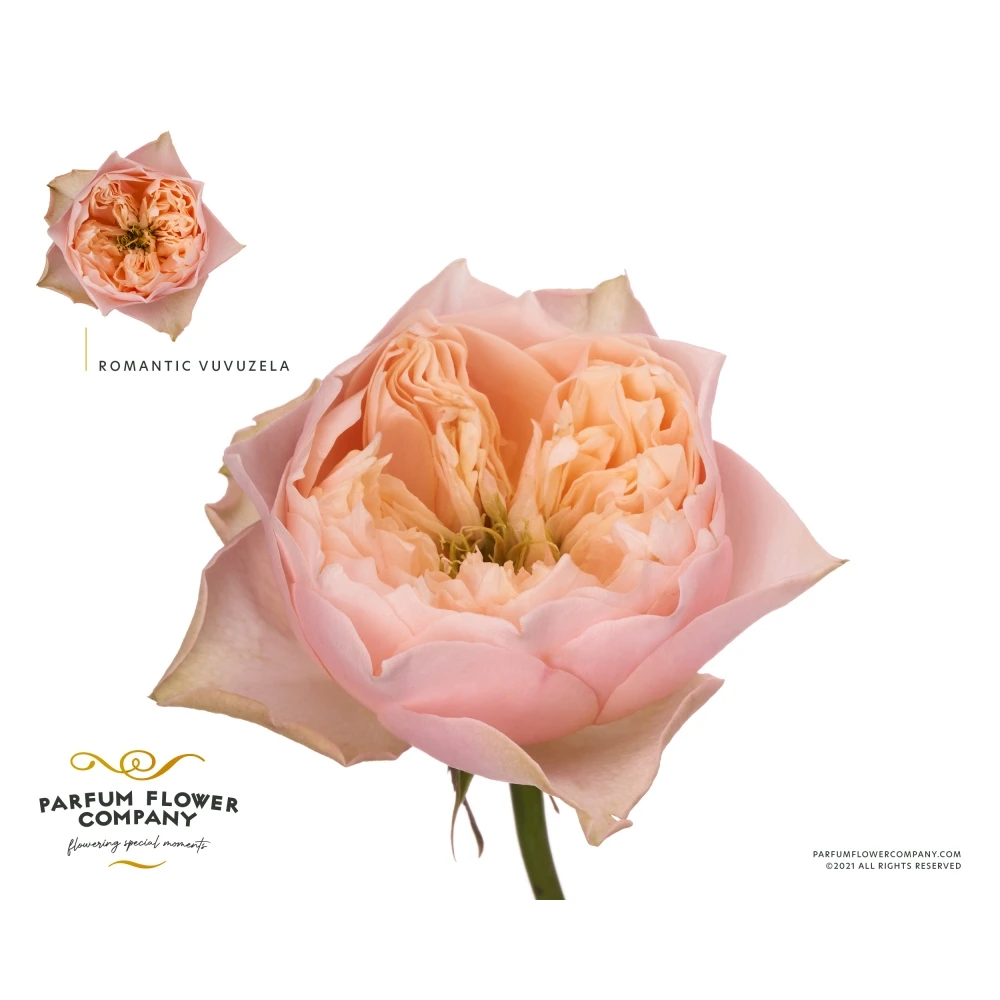 Tuto krásnou a velmi originální růži Romantic Vuvuzela pravděpodobně uvidíte v květinářství jen velmi zřídka. Růže působí velice dekorativně a nostalgicky, a proto je velmi oblíbená do vintage a netradičních vazeb. Nejvíce se však kombinuje do vícedruhových svatebních kytic.