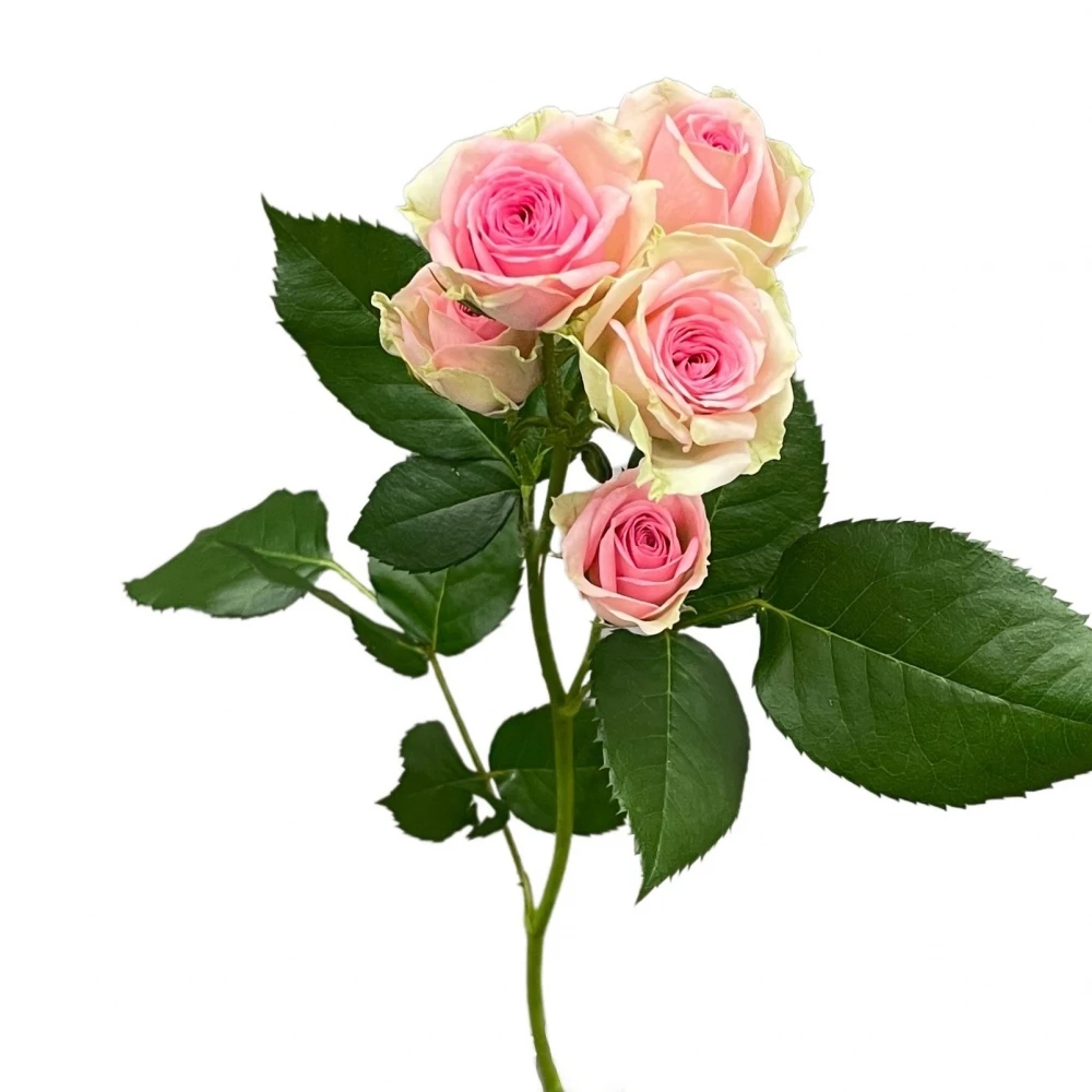 Očarující trsová růže Carlotta s sebou přináší jemnost světlého růžového srdce obklopeného krémově bílými okraji. Její půvabná forma připomíná krásu rozvíjející se elegance, zatímco robustní stonky a zelené listy slibují výdrž a sílu.