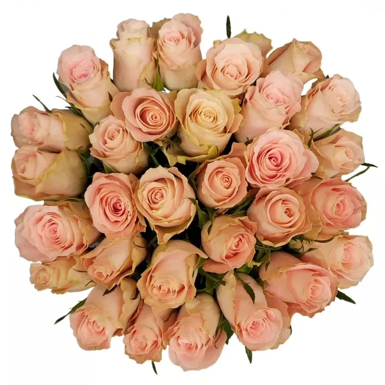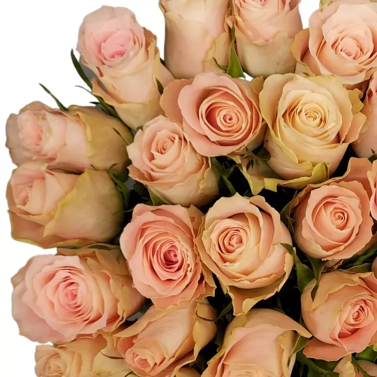 Růže VALERIE je známá svou jemně broskvovou barvou, která evokuje první paprsky východního slunce obklopujícího nebeský azur. Tento jedinečný druh růže je vyhledáván pro svou dlouhou životnost a schopnost přinést do každého interiéru pocit klidu a pohody.
