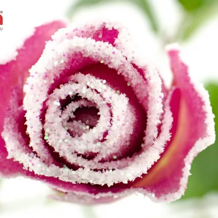 - růže byla posypána speciálním "sněhovým" práškem, aby působila jako namrzlá růže,