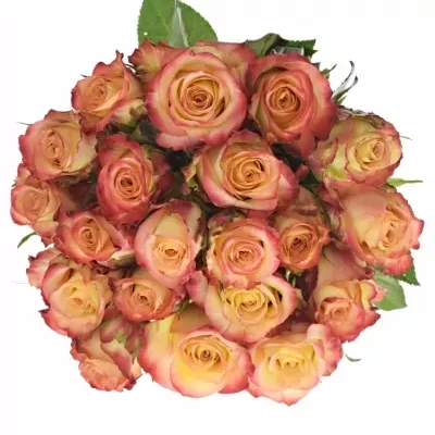 Růžová růže ANTIQUE+ očaruje svým jedinečným přechodem barev od jemnějších růžových tónů po okraje s teplou oranžovou a jemnými červenými akcenty. Velikost květu L nabízí plný vzhled, což z ní dělá ideální volbu pro nápadité kytic a dekorace ve váze.