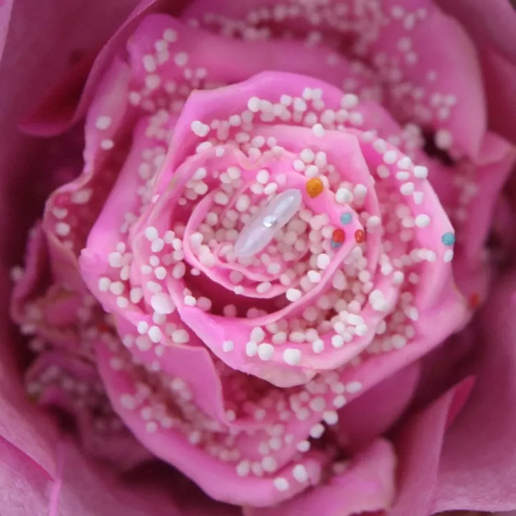 Rosa Cupcake Chocolat Red Pearl Pink Love je sice k nakousnutí, ale jedlá není! Tato čerstvá růžička je totiž zalita parfemovaným voskem, posypána drobnými perličkami a ve svém středu má zasazený topper ve tvaru srdce. A takovou krásu by byla škoda jíst, no ne?