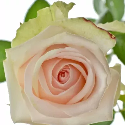 - Světle růžový květ s nazelenalými okrajovými okvětními lístky,