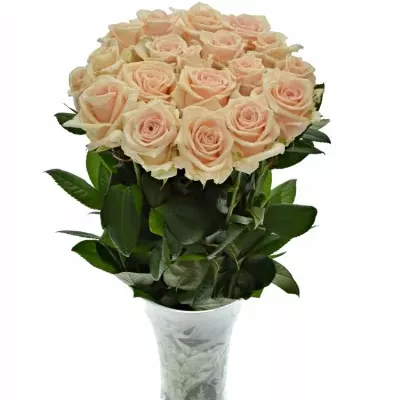 Růže Maisie+ oslavuje jemnost s jejími bohatými květy ve velikosti XL, které jsou zbarveny do tónů připomínajících ranní rozbřesk. Přechod z bledé broskvové do hlubších odstínů růžové dává této růži přirozenou eleganci. Její velkorysé květy, plné a harmonicky uspořádané, dodávají každé kytici výjimečnou estetiku.