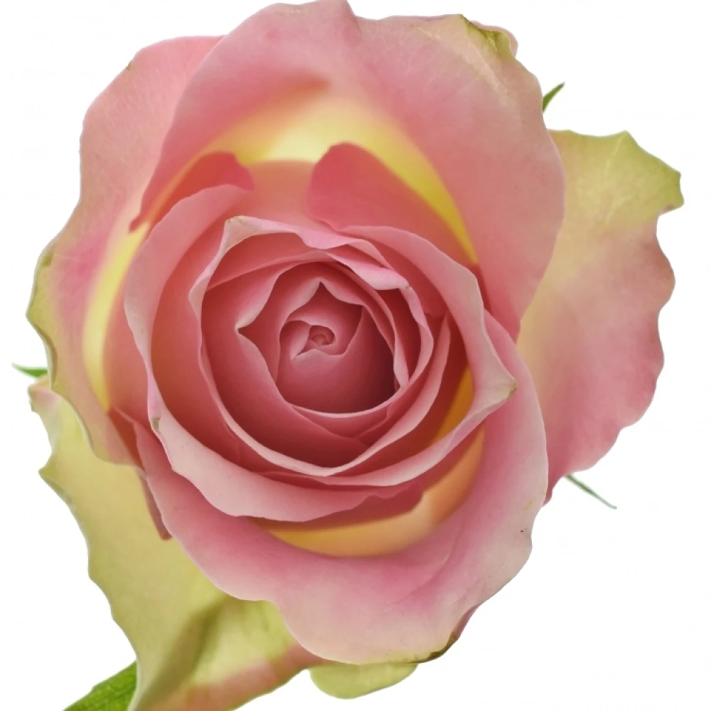 - Zelená barva okvětních lístků ve středu růže ustupuje růžovým tónům, které růži dominují.