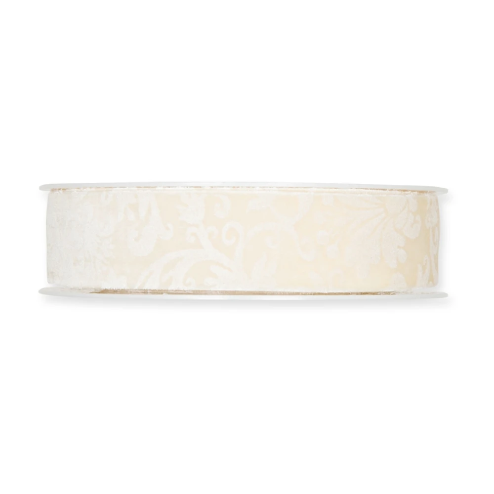 - Sametová stuha s květinovým potiskem krémová 25mm x 6m