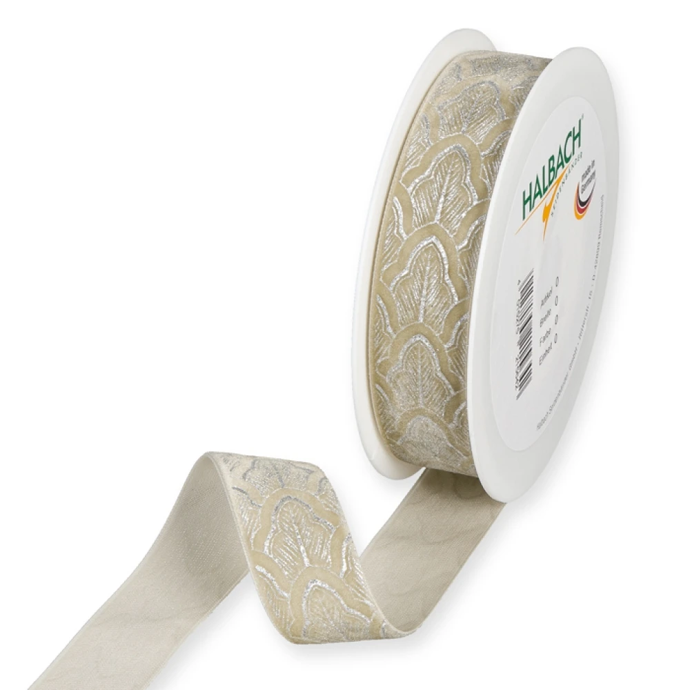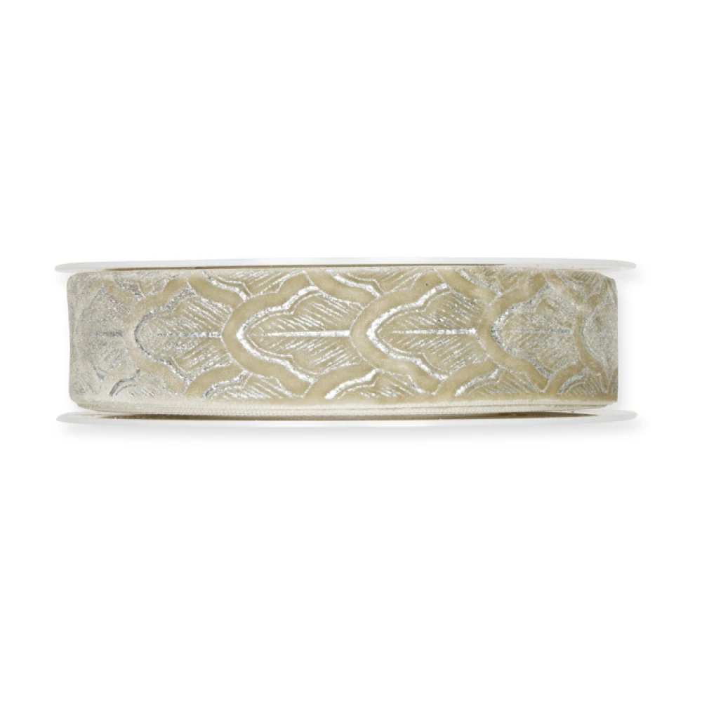 Sametová stuha s ornamentem perleťová 25mm x 6m