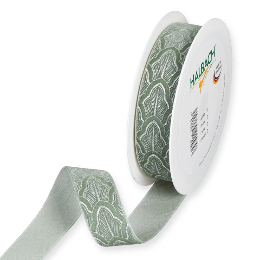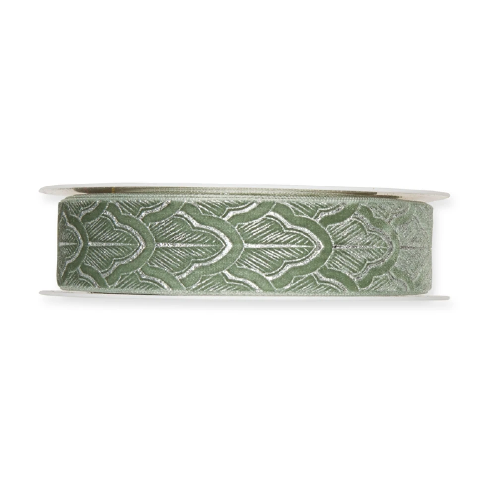 Sametová stuha s ornamentem zelená 25mm x 6m