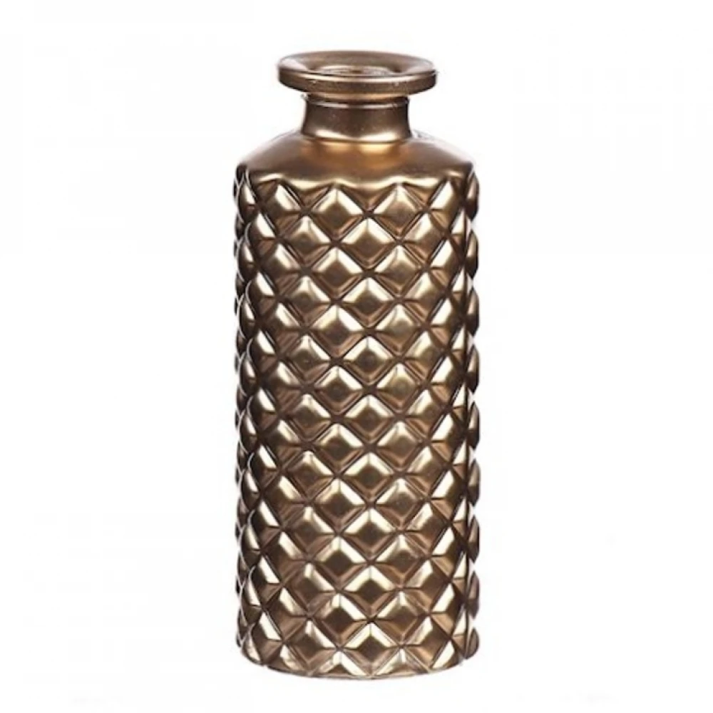 SKLENĚNÁ VÁZA GIORGIA ø5,2cm/3,5cm výška 13,2cm METALICKÁ ZLATÁ