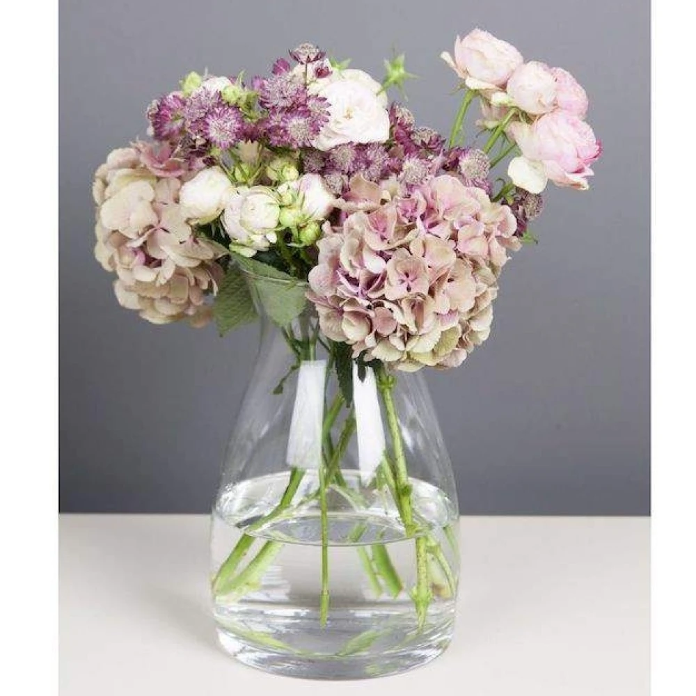 Skleněná váza ELEONORA o průměru 14 cm a výšce 20 cm je naprosto ideální volbou pro kytice 100 růží s velikostí květů S, M, L, a XL o délce 35 až 40 cm. Díky rozšířenému dnu je váza mimořádně stabilní, což umožňuje růžím plně vyniknout a rozvinout se v celé své kráse. Její elegantní tvar poskytuje dostatečnou oporu pro velké kytice, přičemž zachovává jednoduchý a stylový design, který se hodí do jakéhokoliv interiéru. Perfektní pro slavnostní i každodenní aranžmá.