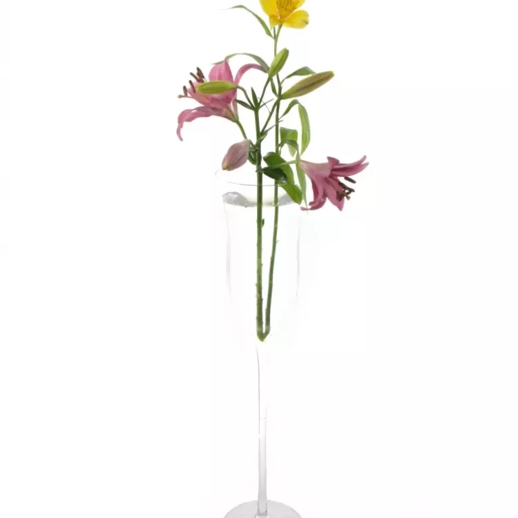 Stylová váza ve tvaru skleničky na přípitek osloví každého milovníka originality a moderních dekorací. Váza je z čirého skla, má silnou nohu i podstavec a je kvalitně zpracovaná.