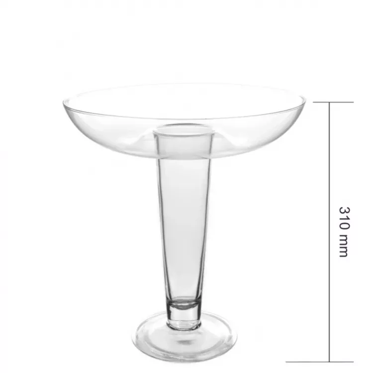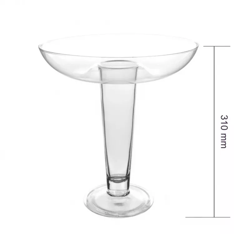Tato skleněná váza je složena z dlouhé nohy s kulatým podstavcem a "kloboučku", který je možné naplnit drobnými dekoracemi, například kamínky či mušličkami.