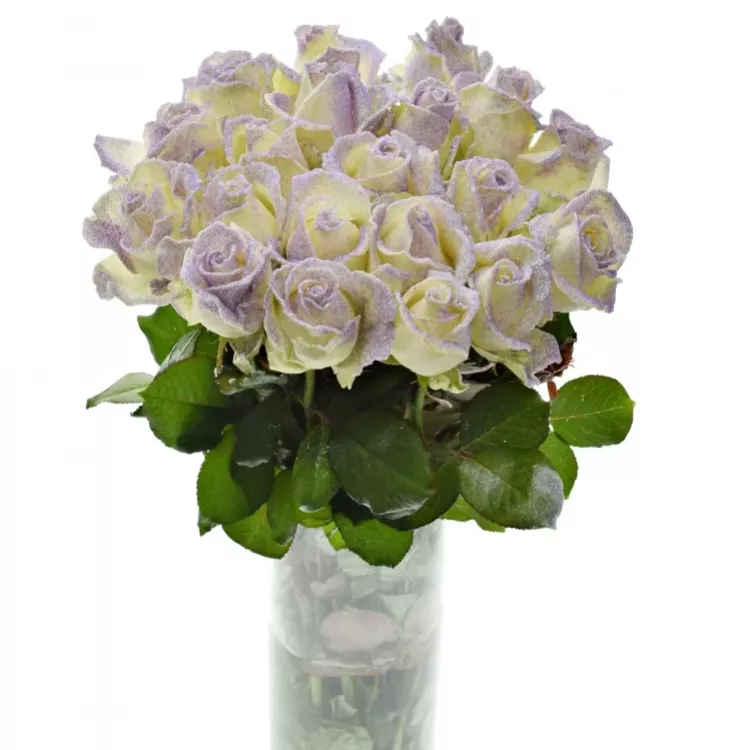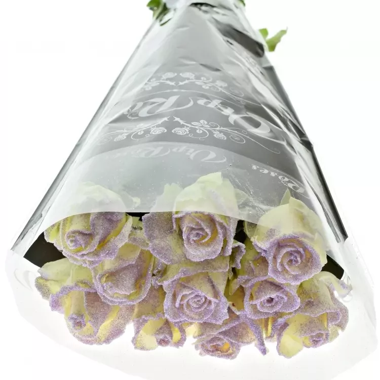 Speciální růže GLITTER VIOLET jsou uměleckým dílem pěstitelské zručnosti z dílny V.I.P. Roses Sassen. Růže procházejí pečlivou ruční úpravou, při které jsou obalené jemným třpytivým práškem, čímž získávají svůj jedinečný vzhled. Jsou pečlivě vybírány a zpracovávány z prémiových krémových nebo bílých růží, aby zajistily, že každá růže je zdravotně nezávadná a bezpečná.