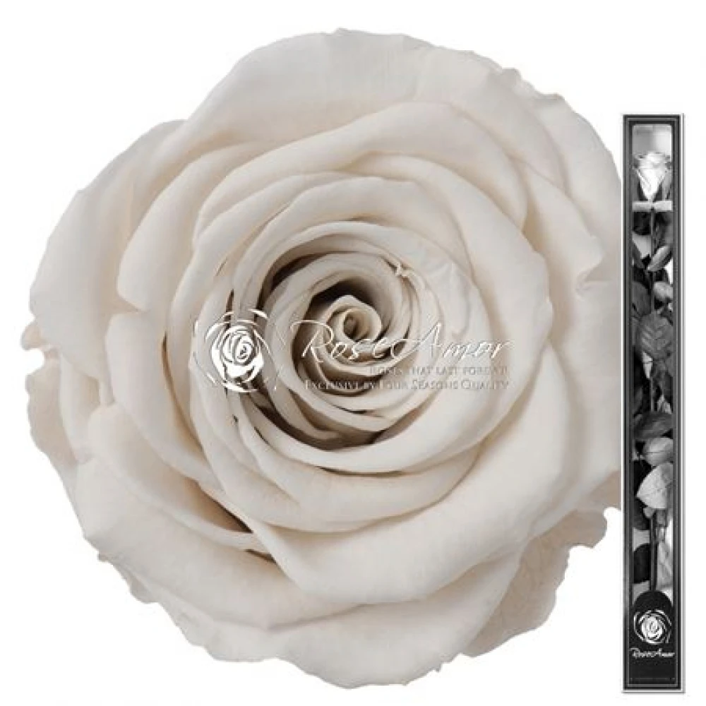 Stabilizovaná bílá růže na stonku 70 cm od Rose Amor představuje vrchol elegance a sofistikovanosti. Díky procesu stabilizace si tato růže zachovává svou dokonalou formu a bělost bez potřeby jakékoliv péče po mnoho let.
