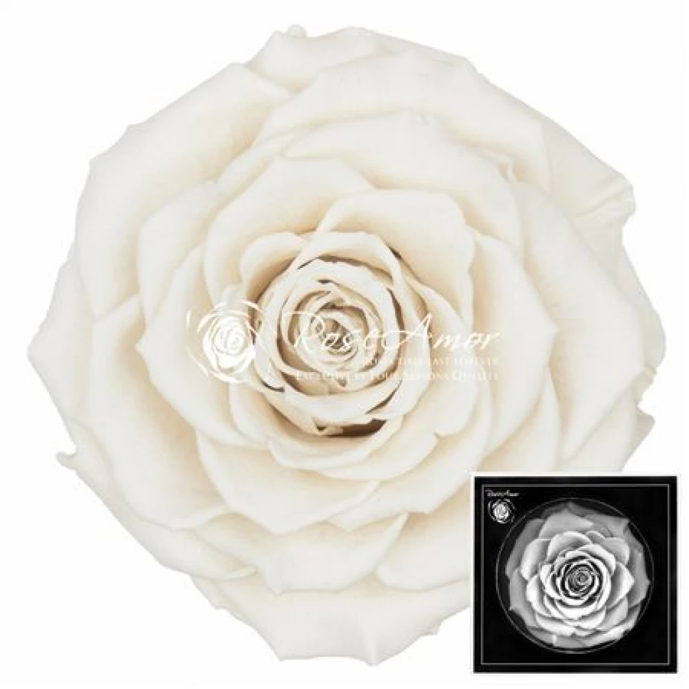 Stabilizovaná bílá růže plnokvětá v krabičce od Rose Amor, představuje vrchol florální dokonalosti. Provedením techniky stabilizace, tato růže si zachovává svou krásu a svěžest dlouhodobě bez nutnosti zalévání. Stabilizované růže jsou vysoce kvalitní, živé růže.