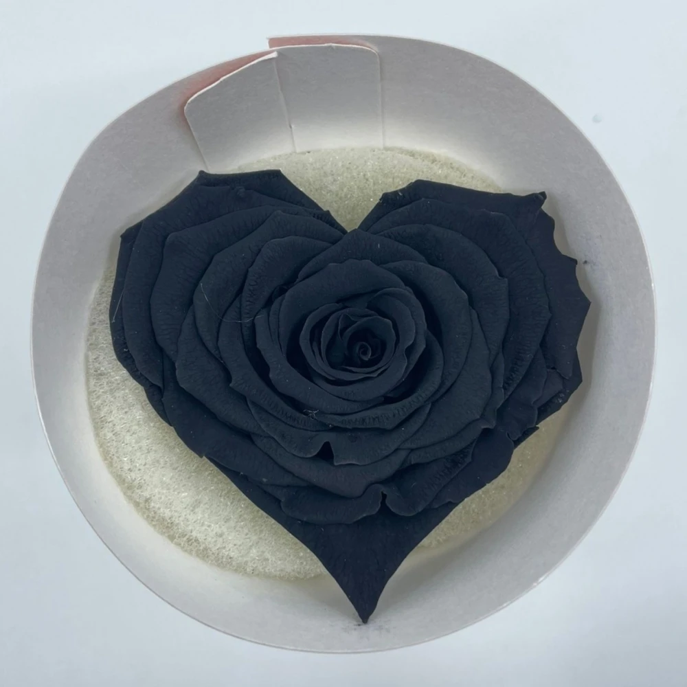 Stabilizovaná černá růže ve tvaru srdce od Rose Amor přináší nejen vizuální dokonalost, ale i trvalost a stálost. Expertní řemeslná práce je zřejmá na první pohled – každý květ je pečlivě zpracován, aby se dosáhl srdcového tvaru, který je tak charakteristický pro tuto speciální růži. Díky stabilizaci, což je proces zpomalující stárnutí přirozených růží, tato květina si zachovává svou strukturu, barvu a čerstvý vzhled bez potřeby vody nebo jiné péče.