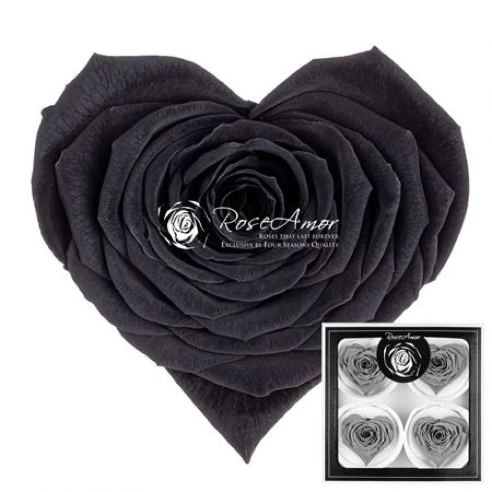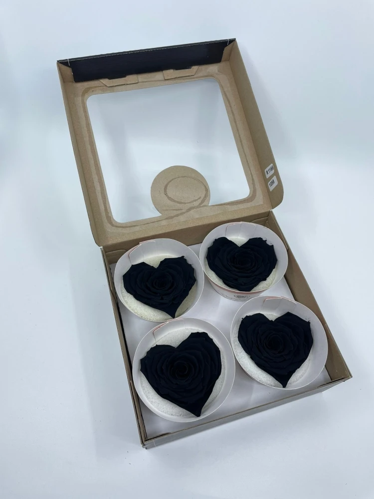 - Stabilizovaná černá růže tvaru srdce 4ks