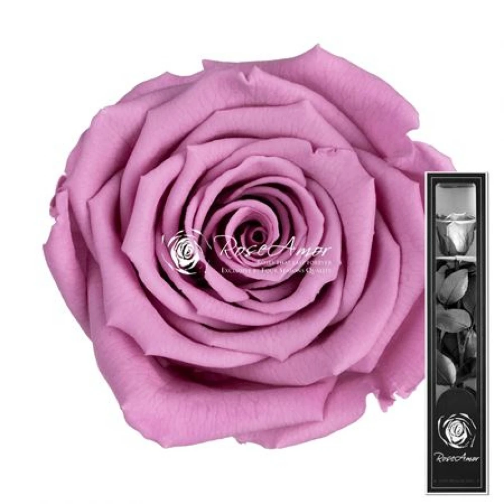 Stabilizovaná fialová růže na stonku v délce 30 cm od Rose Amor je jedinečným kouskem floristického umění. Své nezaměnitelné barvy a dokonalého tvaru si udrží díky pečlivému procesu stabilizace, který prodlužuje její krásu bez nutnosti zálivky či další péče.