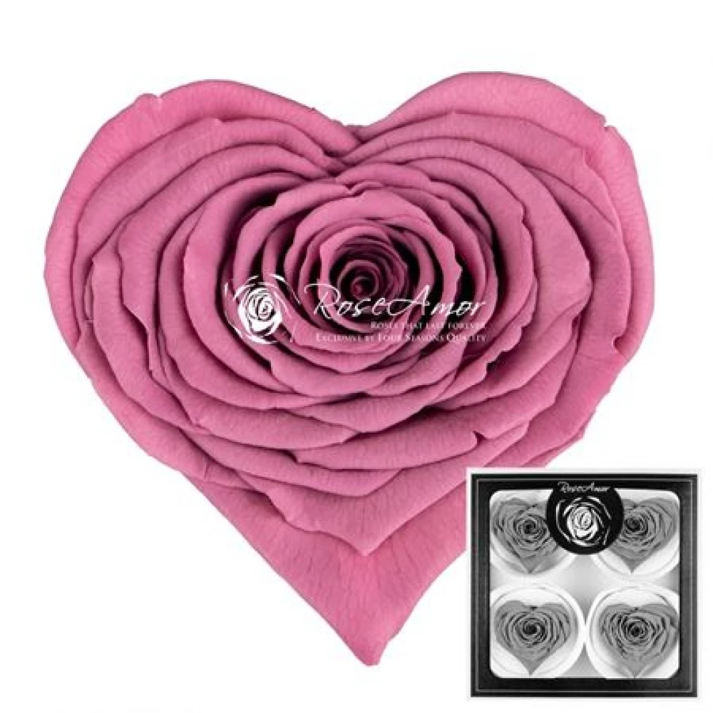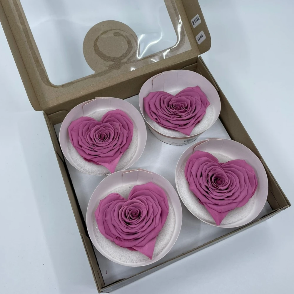 - Stabilizovaná fialová růže tvaru srdce 4ks