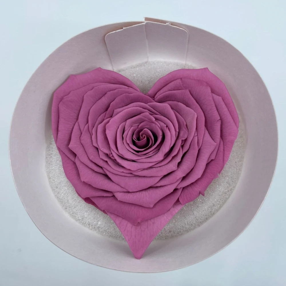 Stabilizovaná fialová růže tvaru srdce od Rose Amor je mistrovské dílo trvalé krásy. Vybrané v optimálním okamžiku rozkvětu, tyto růže prošly inovativním procesem stabilizace, díky kterému uchovávají svůj tvar, barvu a svěží vzhled po mnoho let. Nevyžadují péči ani vodu, což činí tento dárek nejen krásným, ale i praktickým.