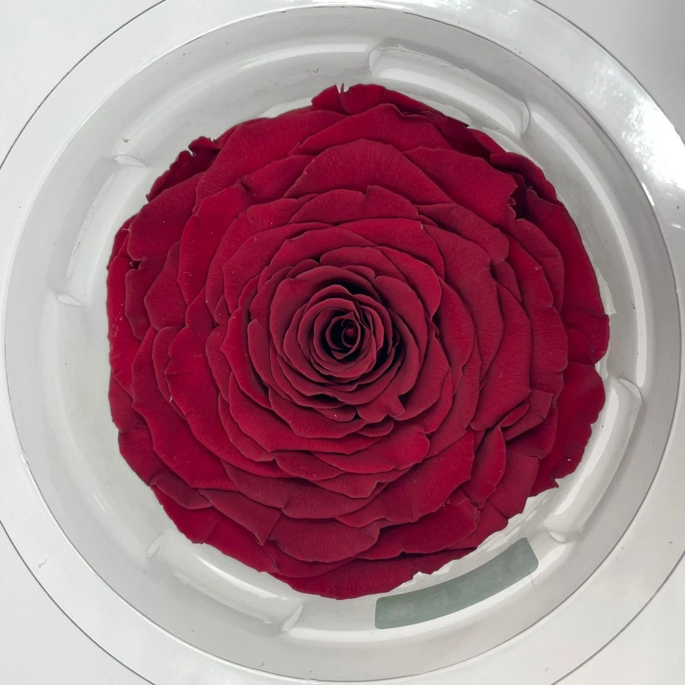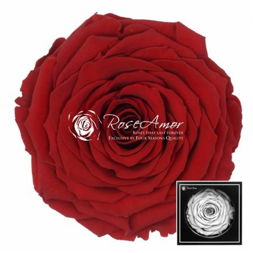Stabilizovaná granátově červená růže XXL v elegantní krabičce od Rose Amor je mistrovským dílem přírodní krásy a umění konzervace. Tato růže prošla speciálním procesem stabilizace, díky kterému si zachová svůj ohromující vzhled a svěžest bez potřeby zalévání, po dlouhou dobu.