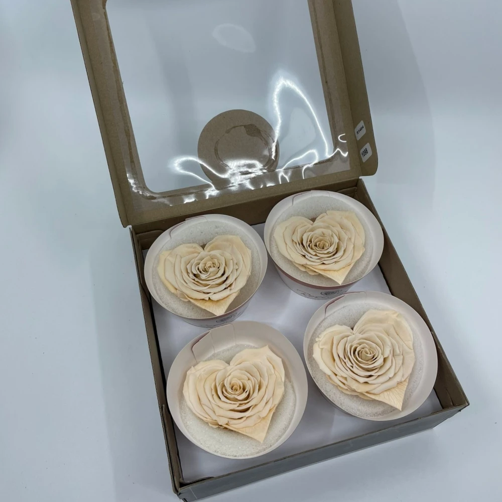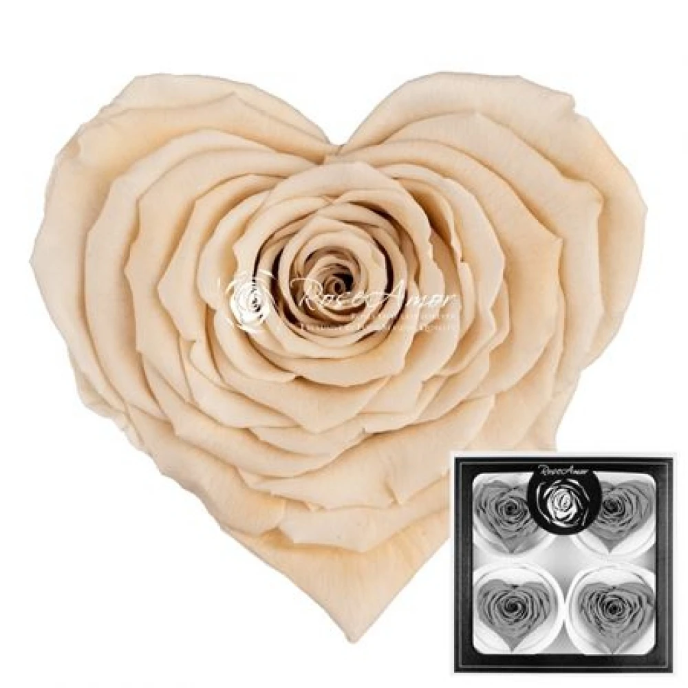 Stabilizovaná krémová růže tvaru srdce 4ks