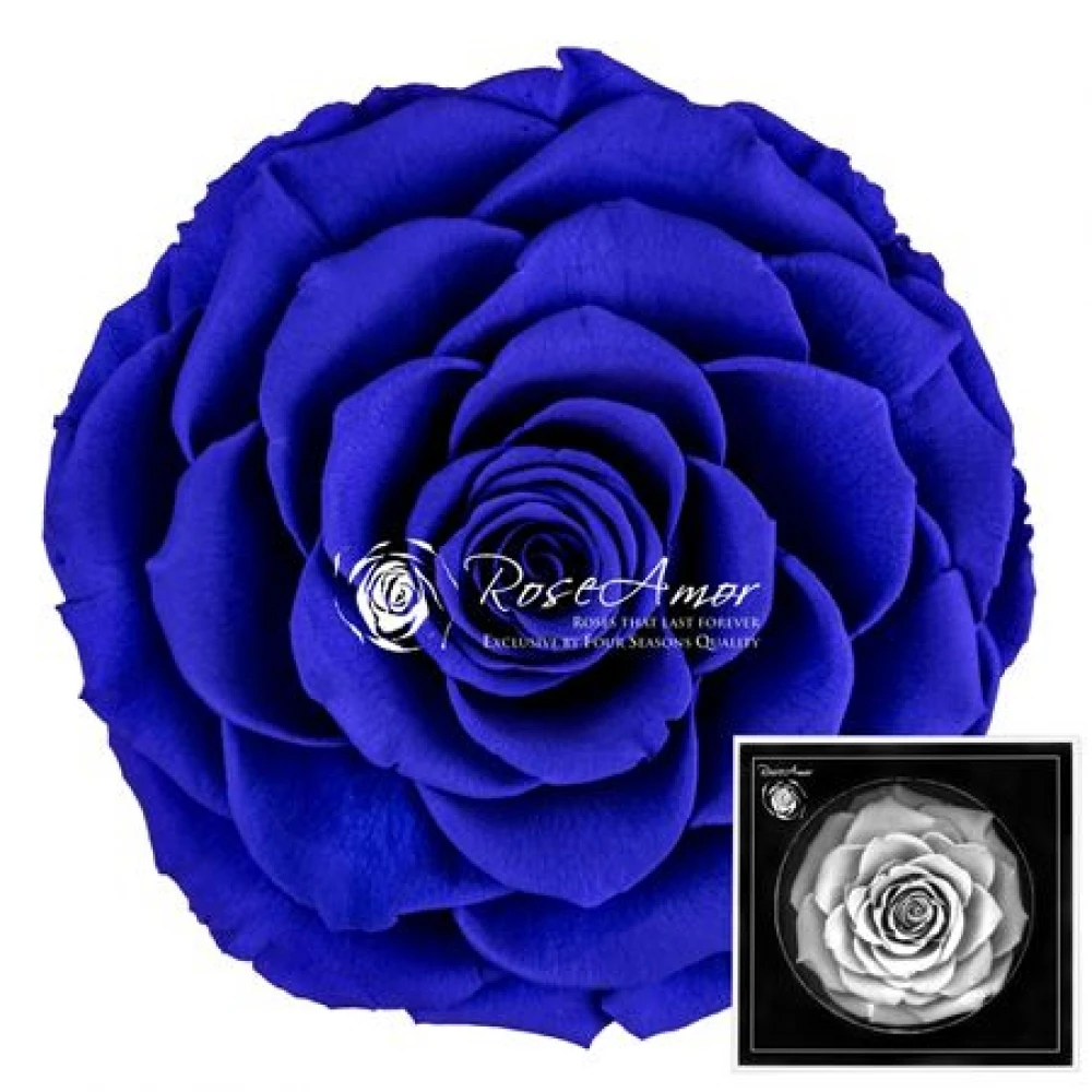 Stabilizovaná modrá růže plnokvětá od Rose Amor přináší do každého prostoru odvážný a výjimečný akcent. Díky pokročilé technice stabilizace si tento květ zachovává svou výraznou barvu a detailní texturu po mnoho let, a to vše bez nutnosti péče.