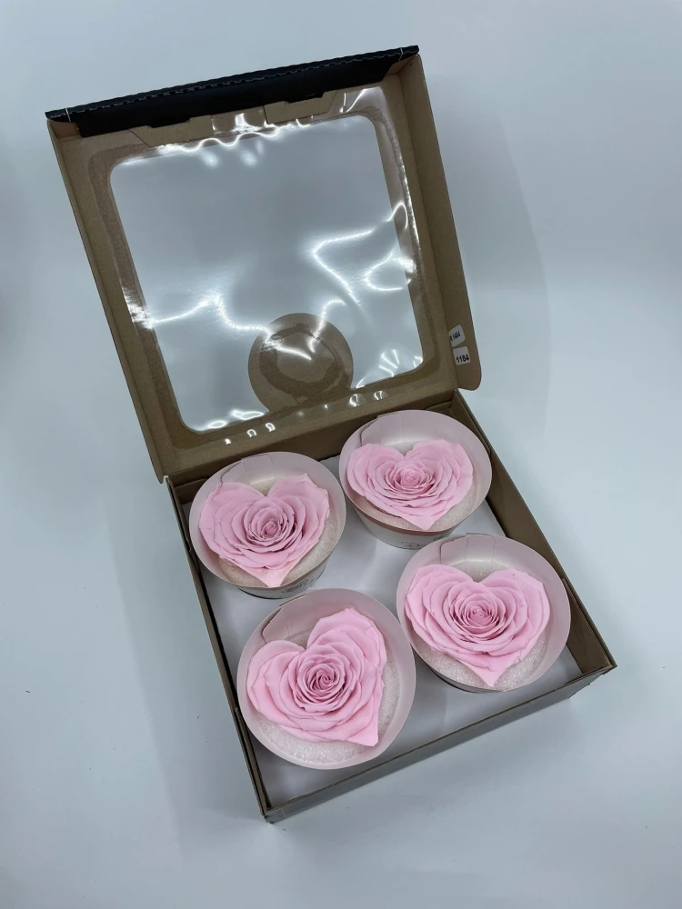 Stabilizovaná růžová růže tvaru srdce 4ks