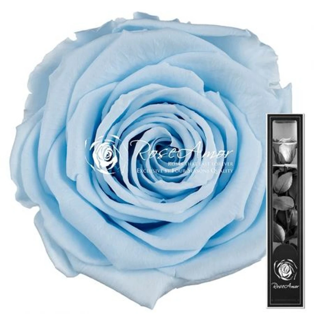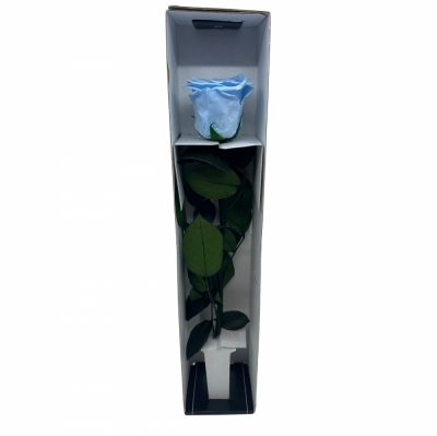 Stabilizovaná světle modrá růže na stonku 30 cm zaujme svým nevšedním vzhledem a dlouhodobou krásou. Díky speciálnímu procesu stabilizace si zachovává svůj půvab bez potřeby zálivky nebo další péče, což ji činí trvalým připomenutím krásných chvil.