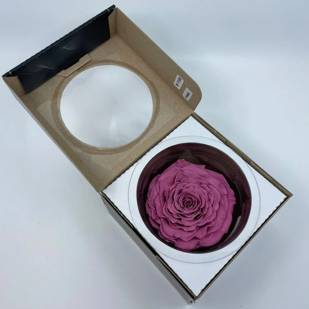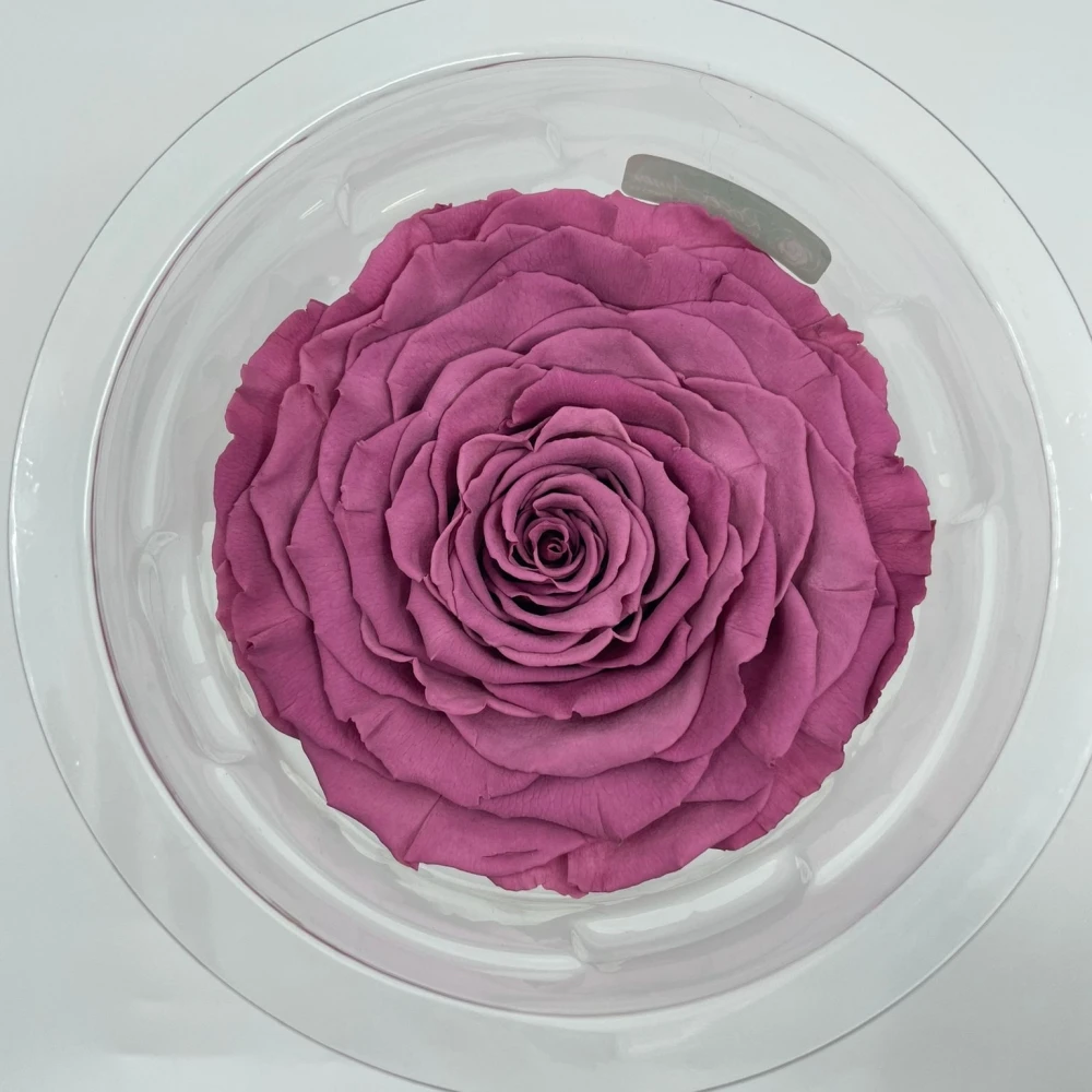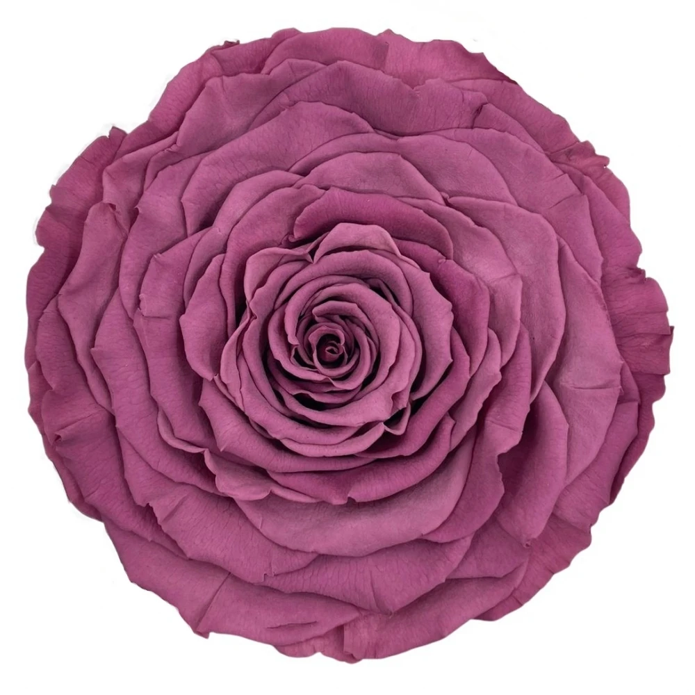 Stabilizovaná fialová růže XXL v elegantní krabičce z naší kolekce je mistrovským dílem přírodní krásy, uchovaným v dokonalém stavu bez potřeby vody nebo další péče. Její bohatá fialová barva a sametové lístky jsou synonymem pro trvání a elegance.