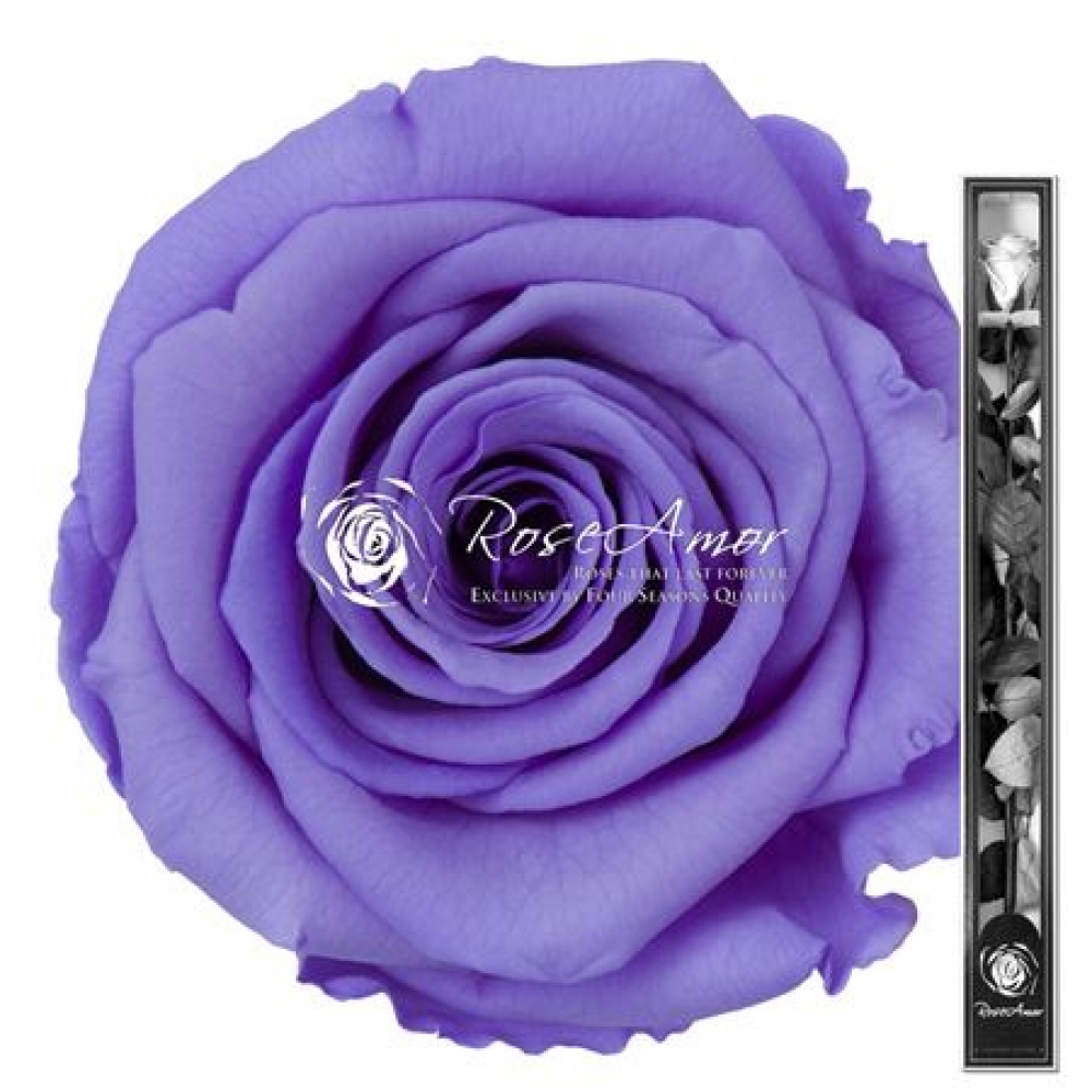 Stabilizovaná tmavě fialová růže na stonku od Rose Amor je pozoruhodným výtvorem zachovávajícím přirozenou krásu a strukturu živého květu. Díky speciální technice stabilizace tyto růže uchovávají svou barvu a pružnost až několik let bez nutnosti vody nebo péče. Růže, balené v elegantní krabičce.