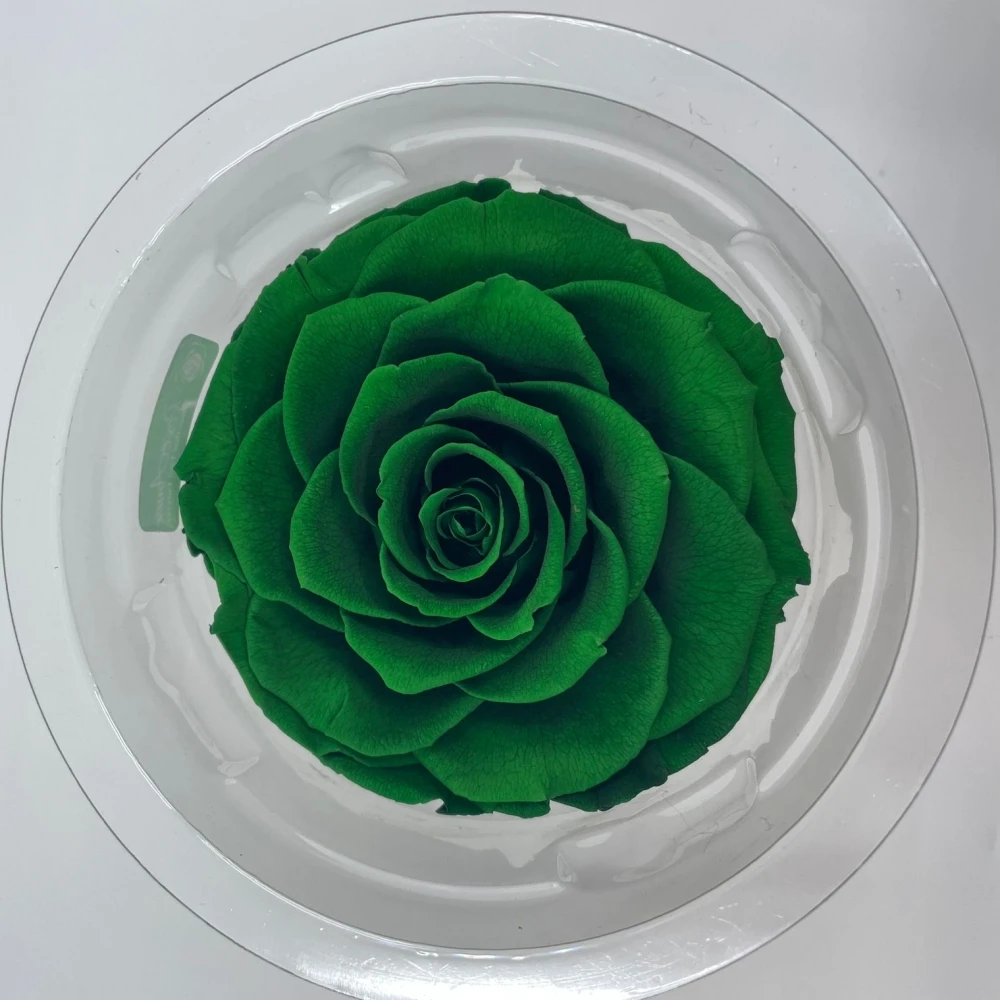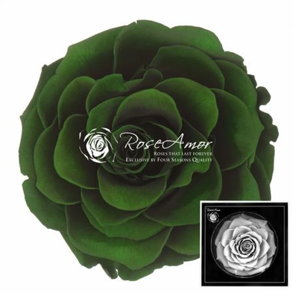 Stabilizovaná tmavě zelená růže plnokvětá v elegantní krabičce od Rose Amor představuje kombinaci přírodní elegance a dlouhotrvající krásy. Přírodní zelené pigmenty jsou zvýrazněny díky sofistikovanému procesu stabilizace, díky kterému tato růže zůstává svěží bez potřeby vody či speciální péče.
