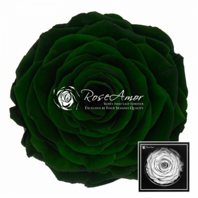Stabilizovaná tmavě zelená růže v krabičce XXL od Rose Amor, zachycená v nejlepším okamžiku svého květu, je uměleckým dílem přírody, pečlivě stabilizováno, aby si zachovala svůj půvab po nespočetné roky.