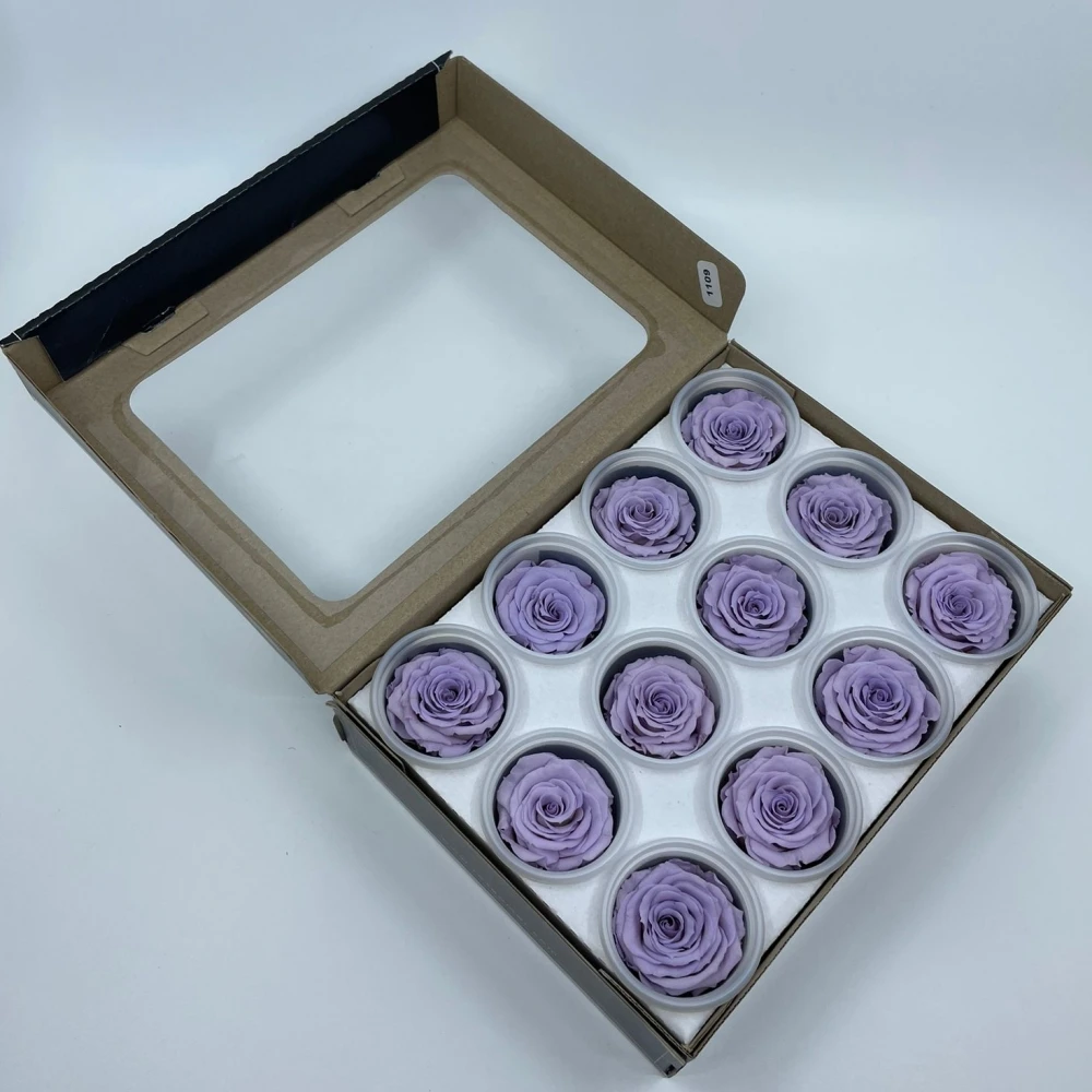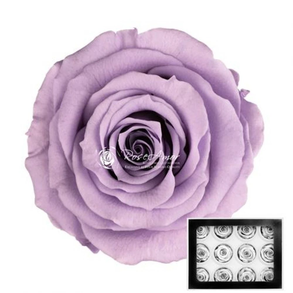 Stabilizované světle fialové růže Rose Amor v krabičce po 12 kusech přináší eleganci a jemnost do každého prostoru. Udržované speciální technikou stabilizace, si tyto květiny zachovávají svůj dokonalý vzhled po mnoho let.