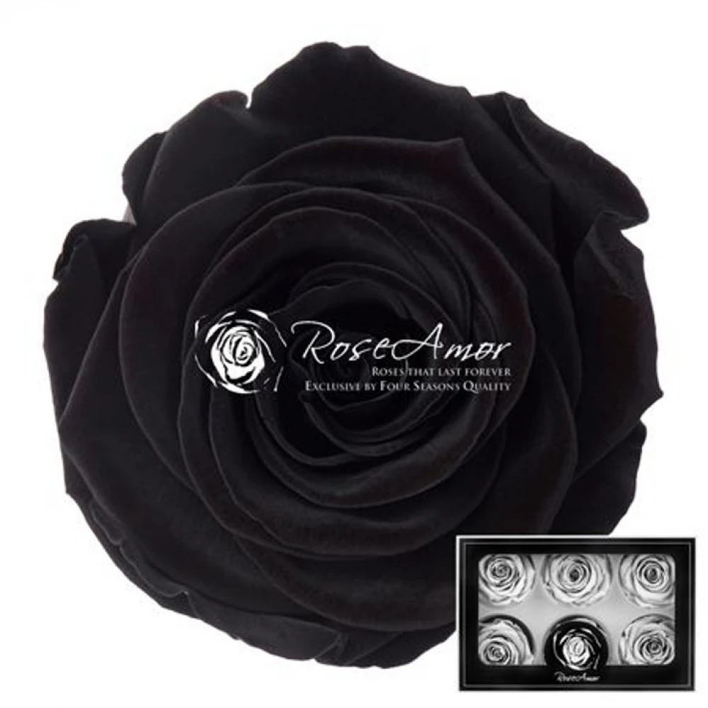 Stabilizované černé růže plus od Rose Amor, prezentované v elegantní krabičce s šesti kusy, představují samotnou podstatu tajemství a nadčasové elegance. Růže jsou důkladně konzervované, aby si zachovaly svou sytou barvu a krásu bez potřeby vody nebo péče, což je činí ideální volbou pro luxusní dekoraci či jako nevšední dar.