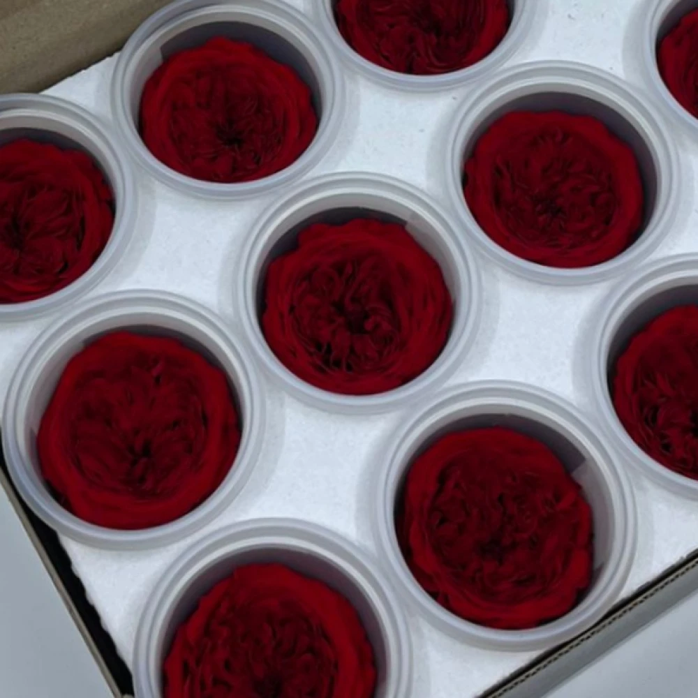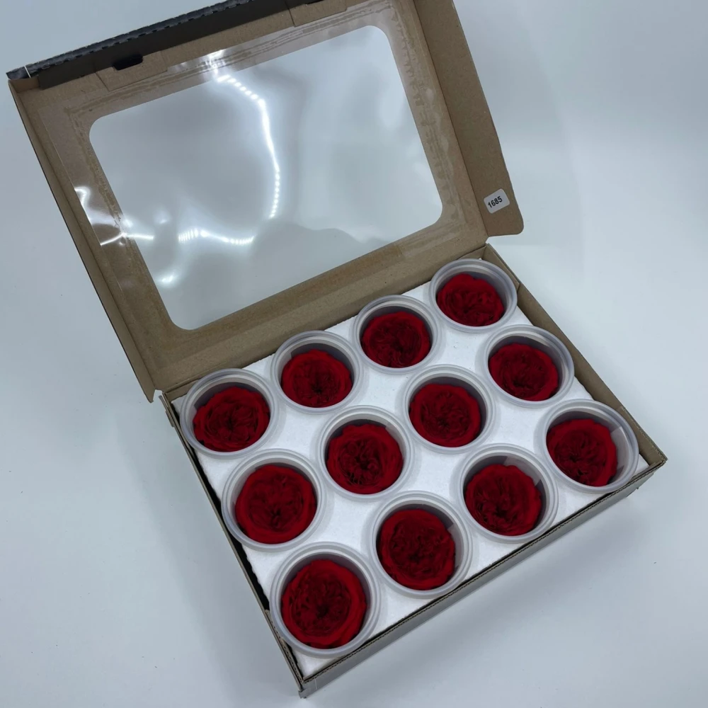 Stabilizované sametově červené zahradní růže v krabičce 12ks