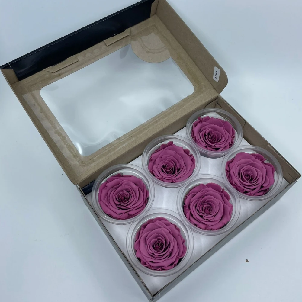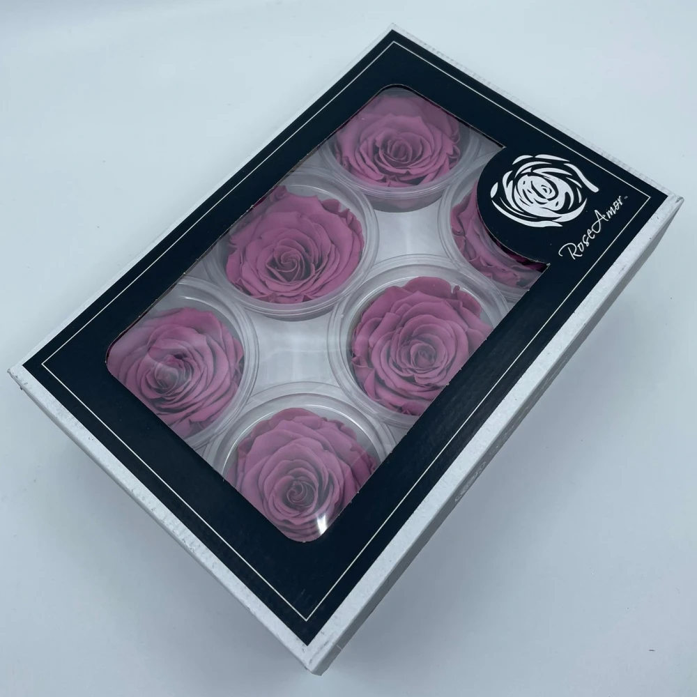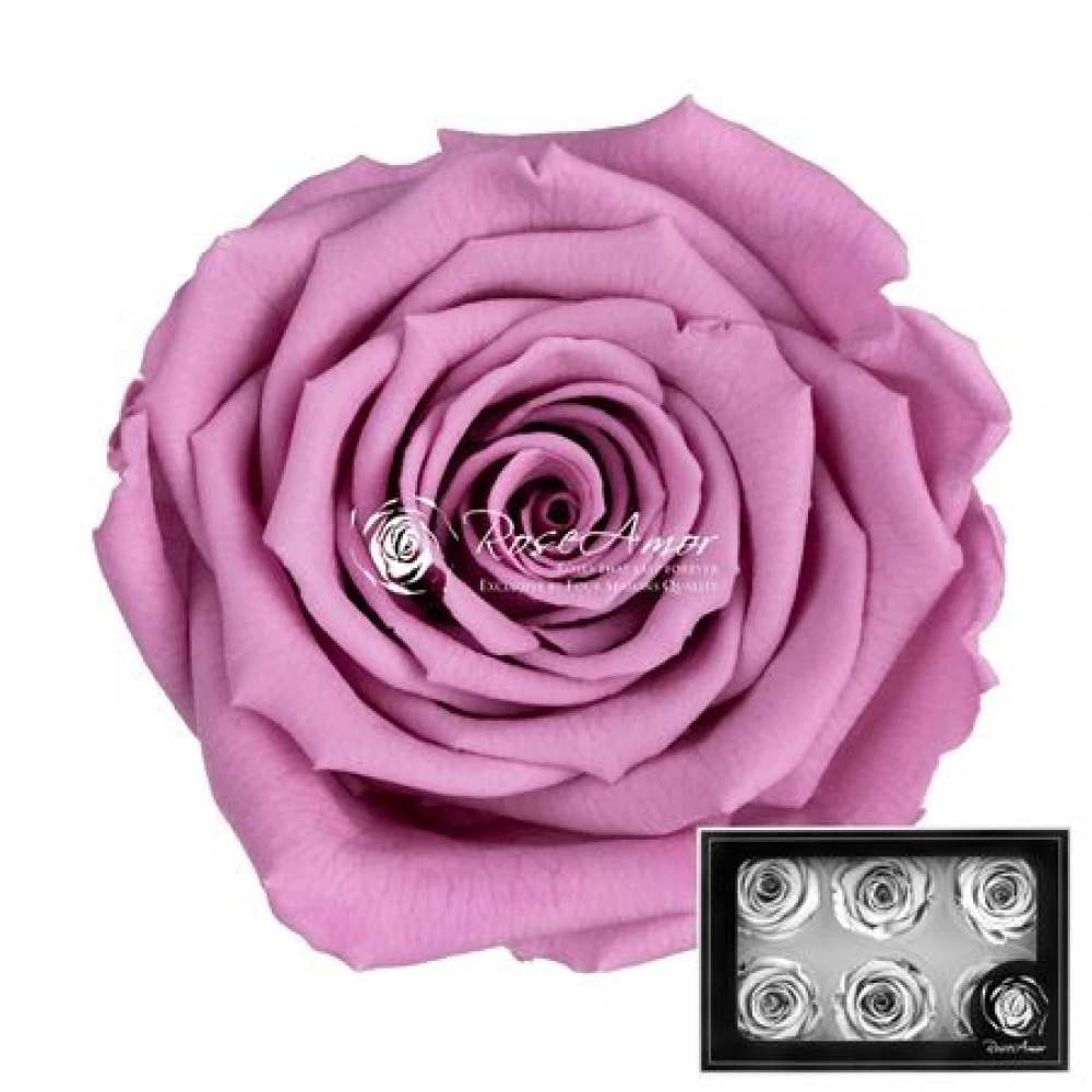 Stabilizované fialové růže v krabičce 6ks od Rose Amor jsou výsledkem inovativní technologie stabilizace, která udržuje jejich přirozenou krásu a strukturu bez nutnosti zálivky či denní péče. Tato metoda umožňuje růžím zůstat svěžími a nádhernými po mnoho let.