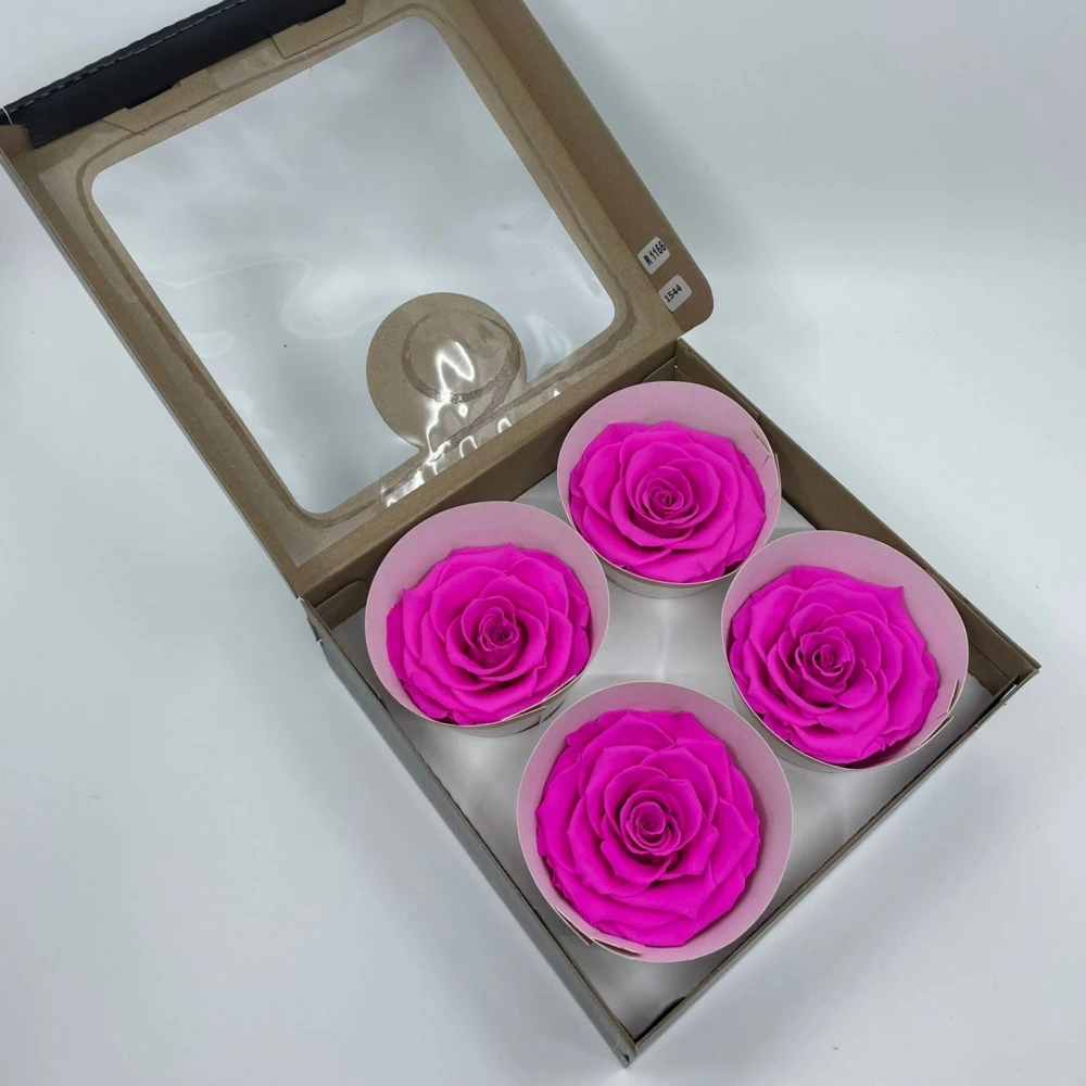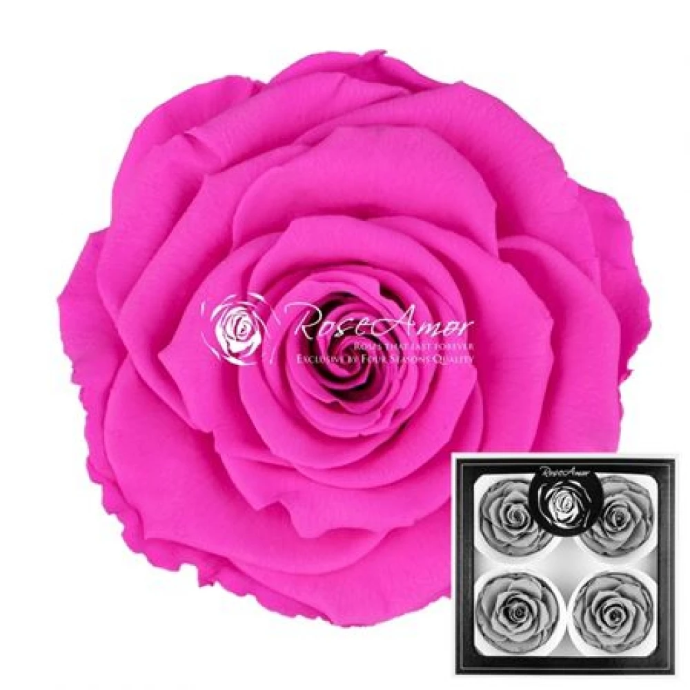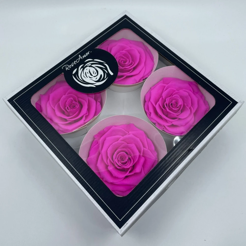 Stabilizované fuchsiové růže v krabičce 4 ks od Rose Amor představují dokonalou harmonii přírodní krásy a uměleckého zpracování. Díky pečlivému procesu stabilizace si růže udrží svůj oslnivý vzhled a sytost barvy bez potřeby péče až několik let.