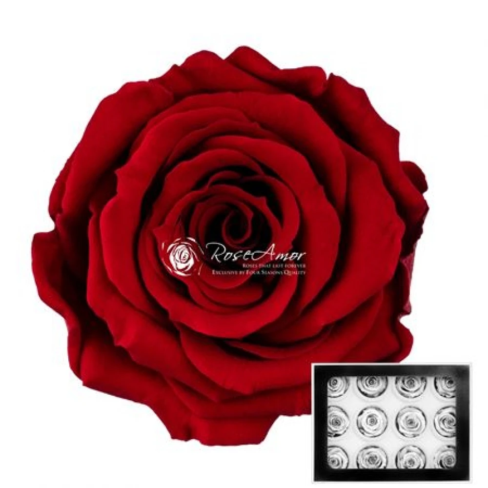 Stabilizované granátově červené růže v elegantní krabičce po dvanácti kusech od Rose Amor představují vrchol elegance a kvality. Díky speciálnímu procesu stabilizace si tyto růže uchovávají svůj hluboký odstín a svěžest dlouhé měsíce až roky, čímž přinášejí trvalou krásu do každého interiéru.