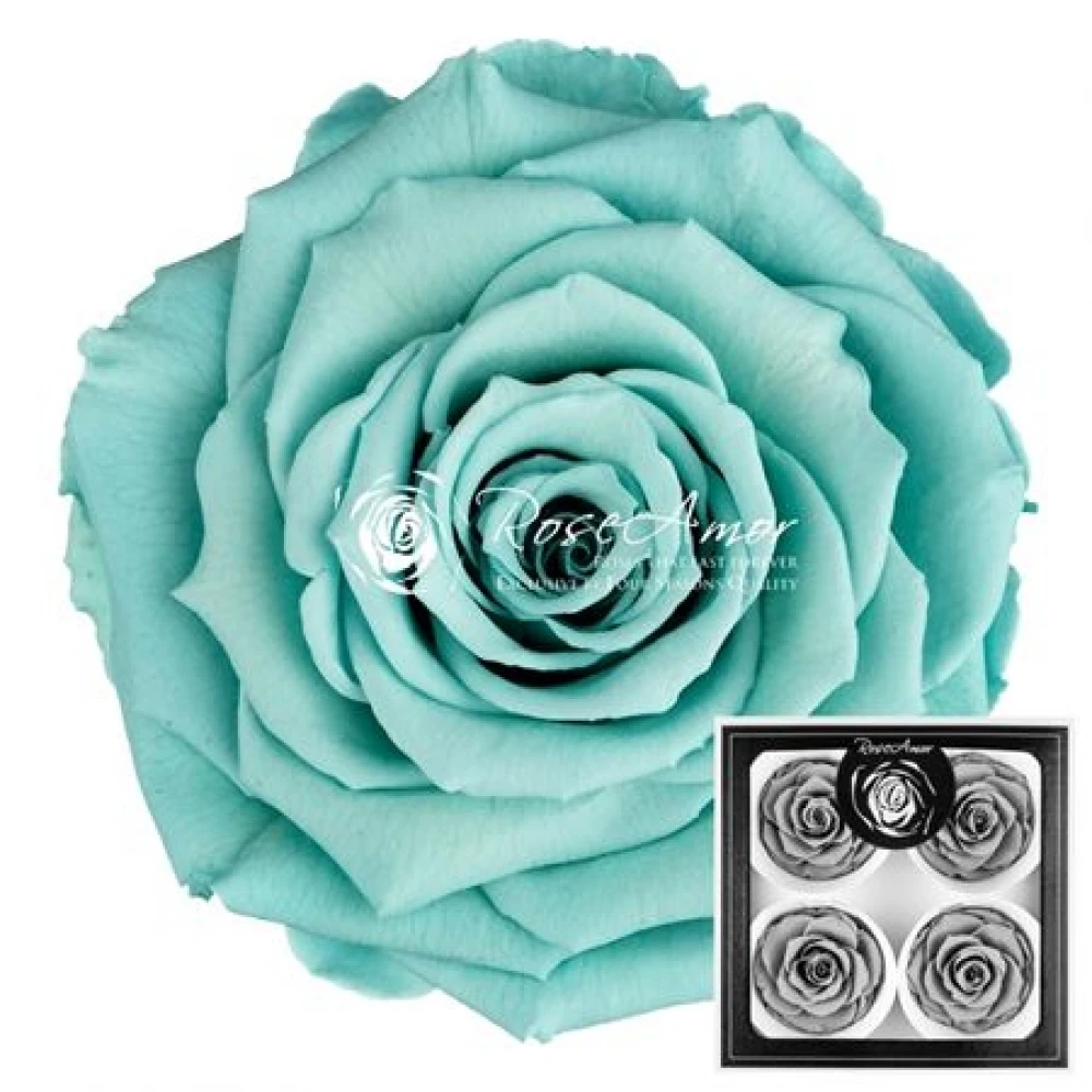 Stabilizované ledově modré růže plnokvěté v krabičce 4 ks od Rose Amor jsou vytvořeny k zachování přirozené krásy a vzhledu živých květů bez potřeby vody či péče. Díky inovativní technologii stabilizace tyto růže udrží svůj dokonalý vzhled po dlouhé období.