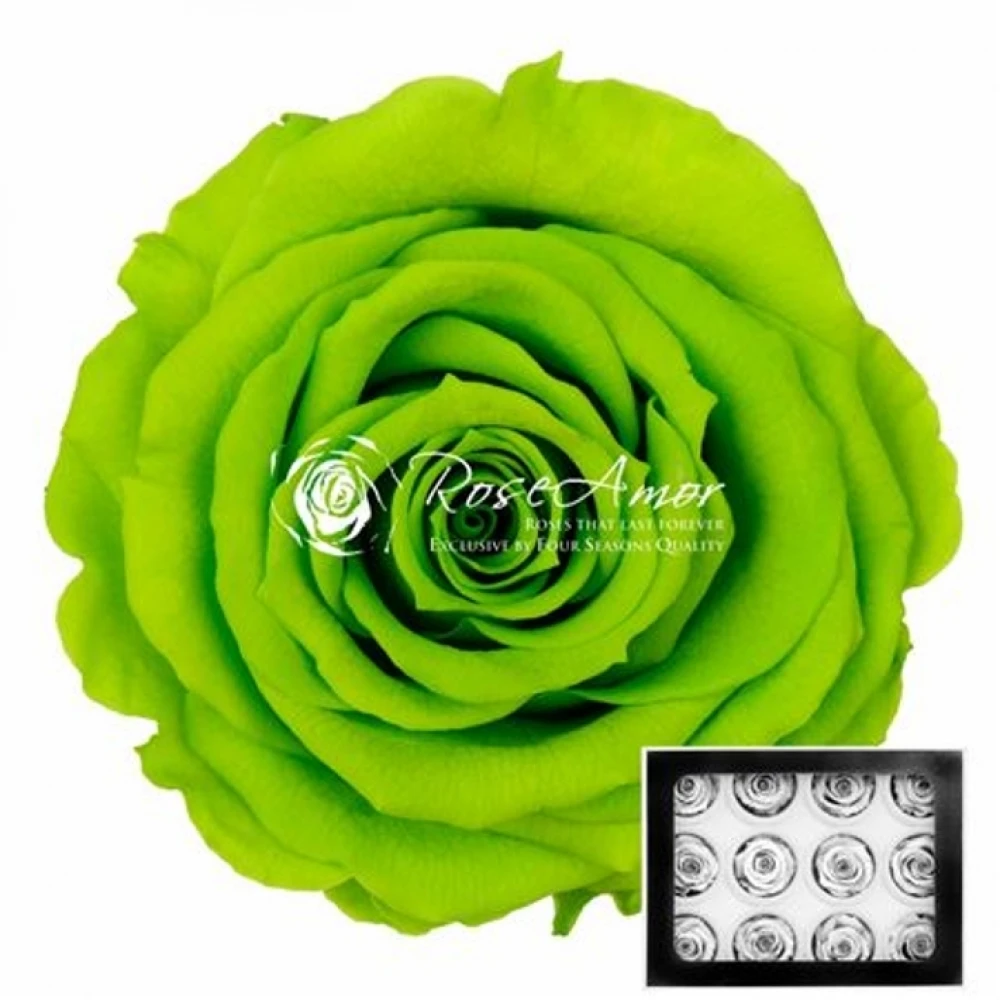 Stabilizované limetkově zelené růže v elegantní krabičce po 12 ks od Rose Amor přinášejí do vašeho života svěží jiskru přírody. Díky pečlivému procesu stabilizace si tyto růže zachovávají svou živost a krásu po mnoho let, bez potřeby vody či další péče.
