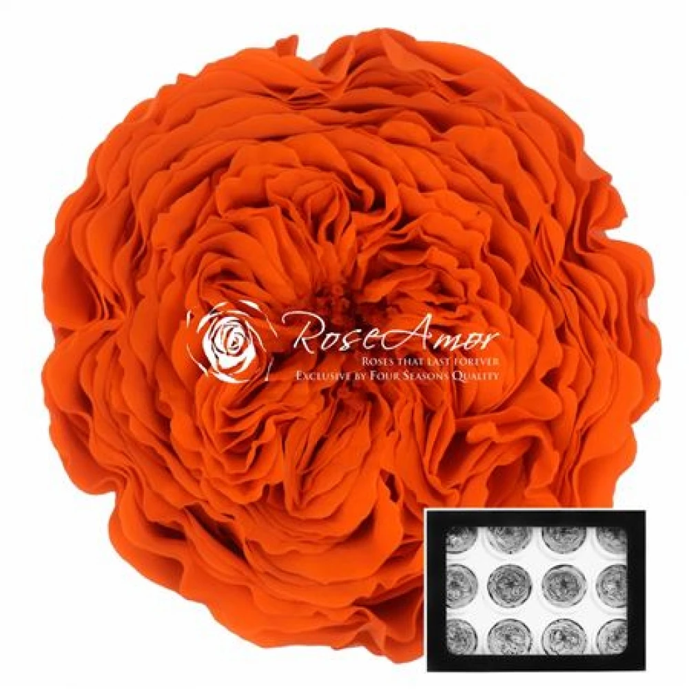 Stabilizované oranžové růže v krabičce po 12ks od Rose Amor poskytují dlouhotrvající dekoraci bez nutnosti každodenní péče. Každá růže byla ošetřena metodou, která zajišťuje její stálost a zachování barvy, textury a tvaru. Květiny, balené v elegantní krabičce činí ideálním dárkem pro narozeniny, výročí, nebo jako výraz vděku a lásky.