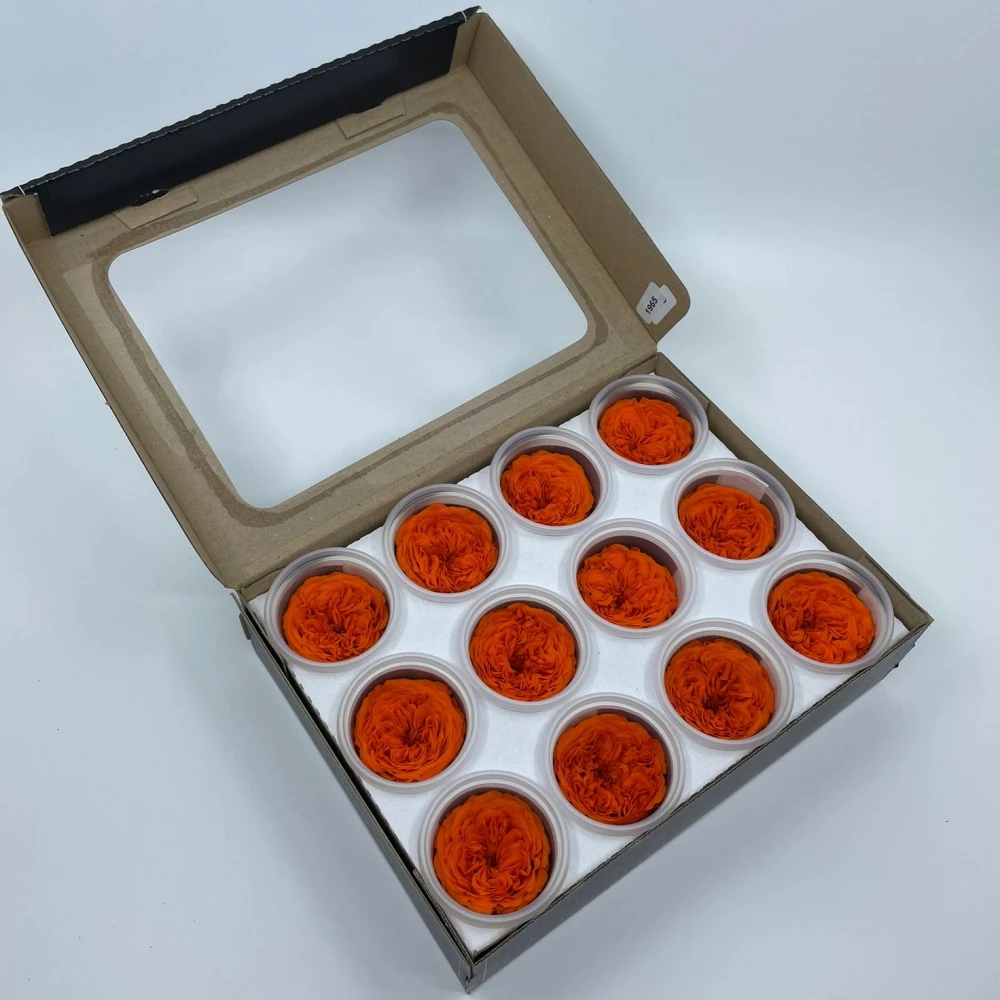Stabilizované oranžové zahradní růže v krabičce 12ks