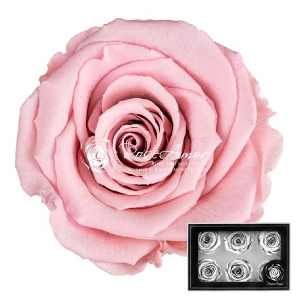 Stabilizované růžové růže v krabičce po šesti kusech od Rose Amor jsou skvostem mezi trvanlivými květinami. Díky šetrnému procesu stabilizace si tyto růže zachovávají svou přirozenou texturu a odstín růžové barvy, který je symbolem něžnosti a elegance. Každá růže je pečlivě zpracována tak, aby vydržela až několik let bez potřeby vody nebo údržby.