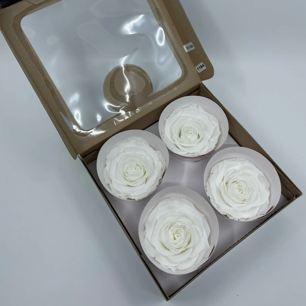 Stabilizované sněhově bílé růže v krabičce 4ks