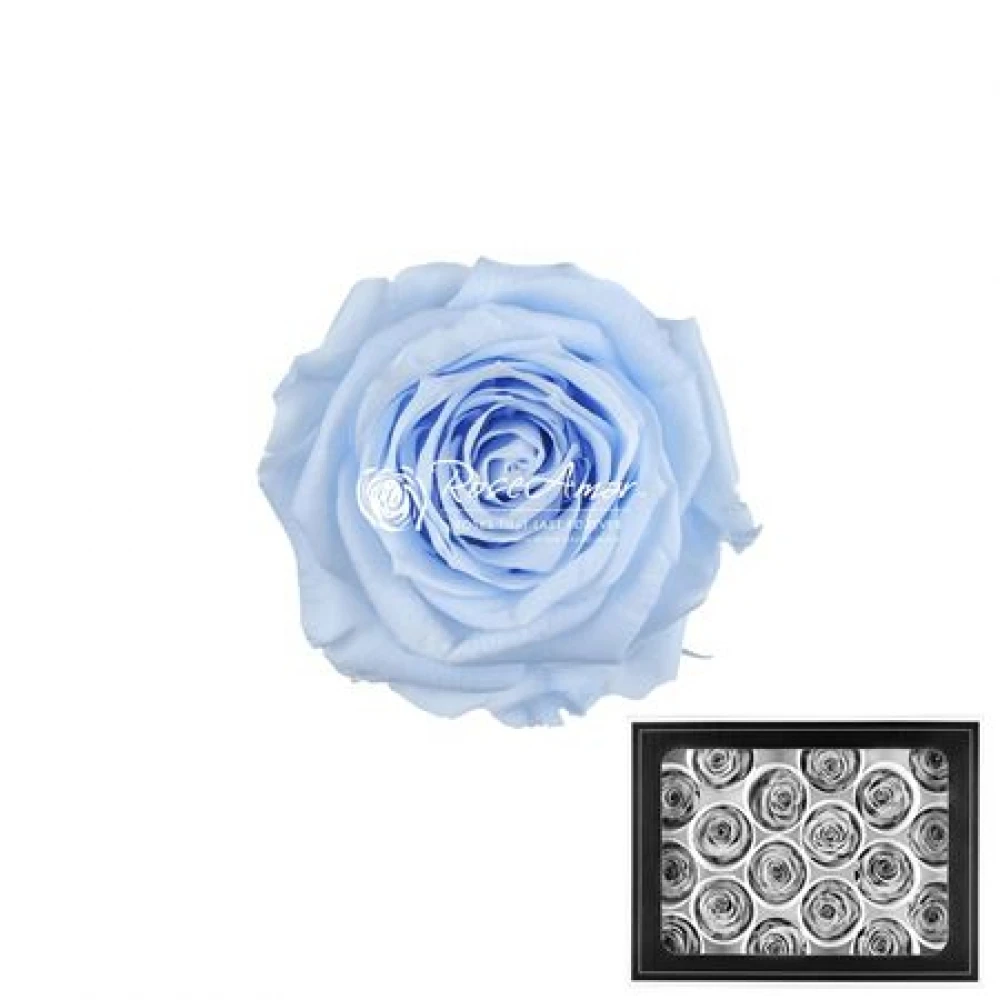 Stabilizované světle modré růže v elegantní krabičce po 18ks od Rose Amor jsou nádherným výběrem pro ty, kteří hledají netradiční a dlouhotrvající květinovou dekoraci. Speciální technika stabilizace zachovává živost barvy a svěžest každého květu po mnoho let.