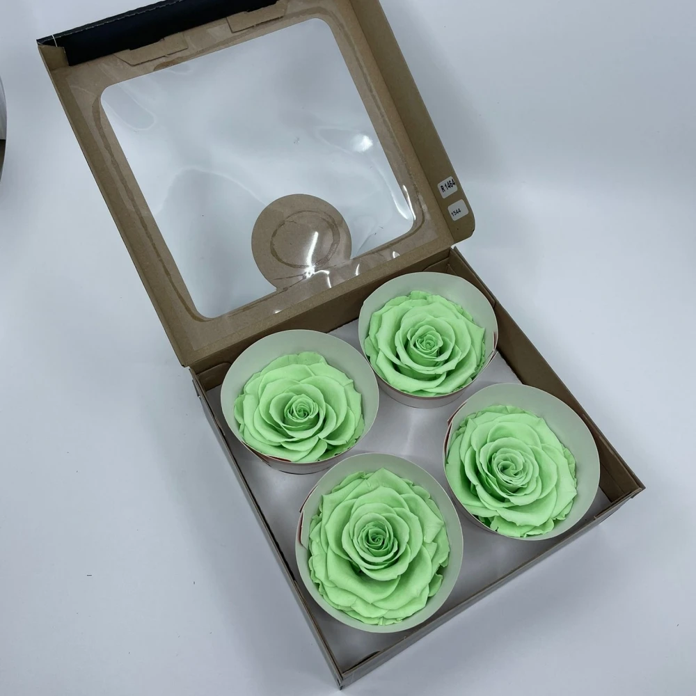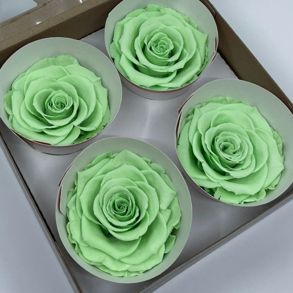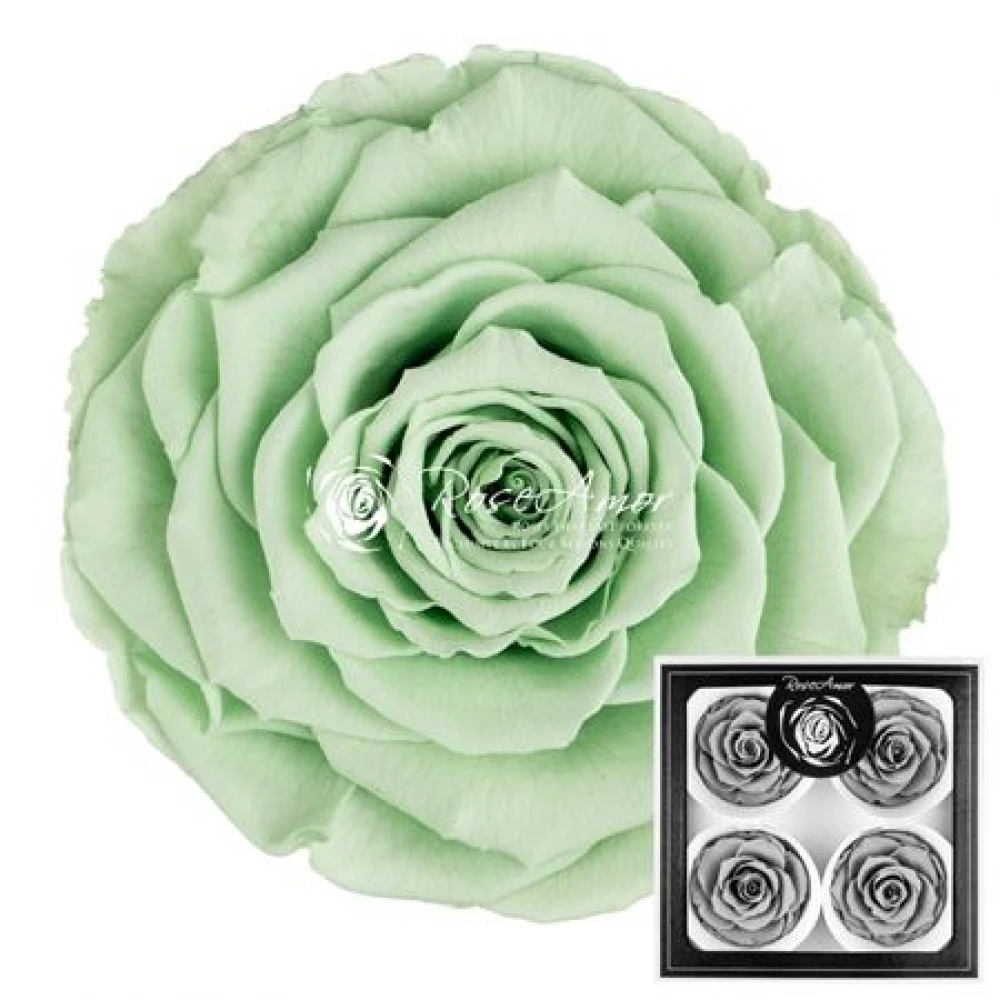 Stabilizované světle zelené růže v krabičce 4ks od Rose Amor přinášejí jemný dotek přírody a svěžesti do každého prostoru. S péčí uchovány v nejlepším období jejich krásy, tyto růže symbolizují růst a obnovu bez potřeby pravidelné údržby.