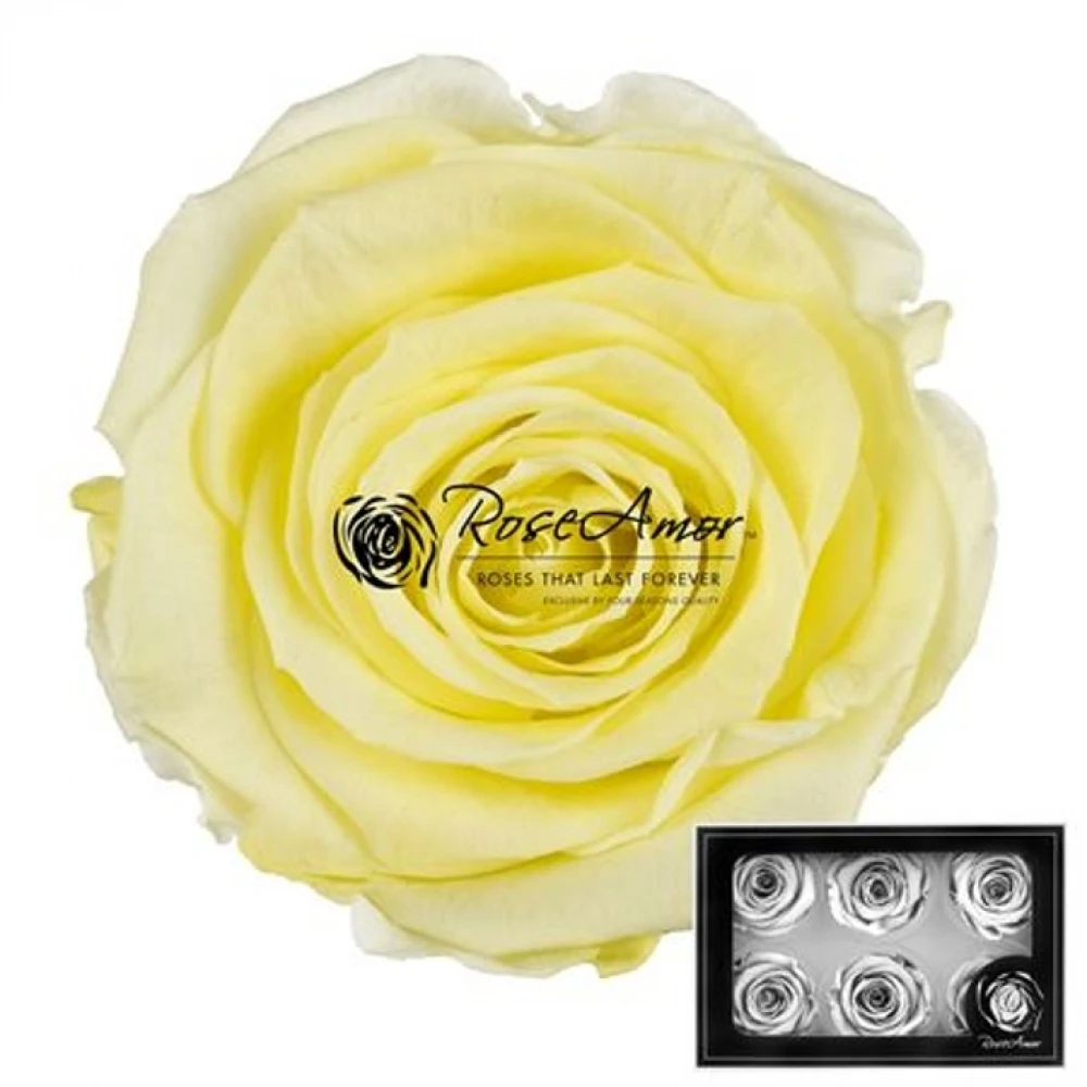 Stabilizované světle žluté růže v elegantní krabičce po šesti kusech od značky Rose Amor jsou synonymem nejen pro nadčasovou eleganci, ale také pro trvalou krásu. Růže procházejí pečlivým procesem stabilizace, díky němuž si zachovávají svůj svěží vzhled a nádherné odstíny bez nutnosti údržby.