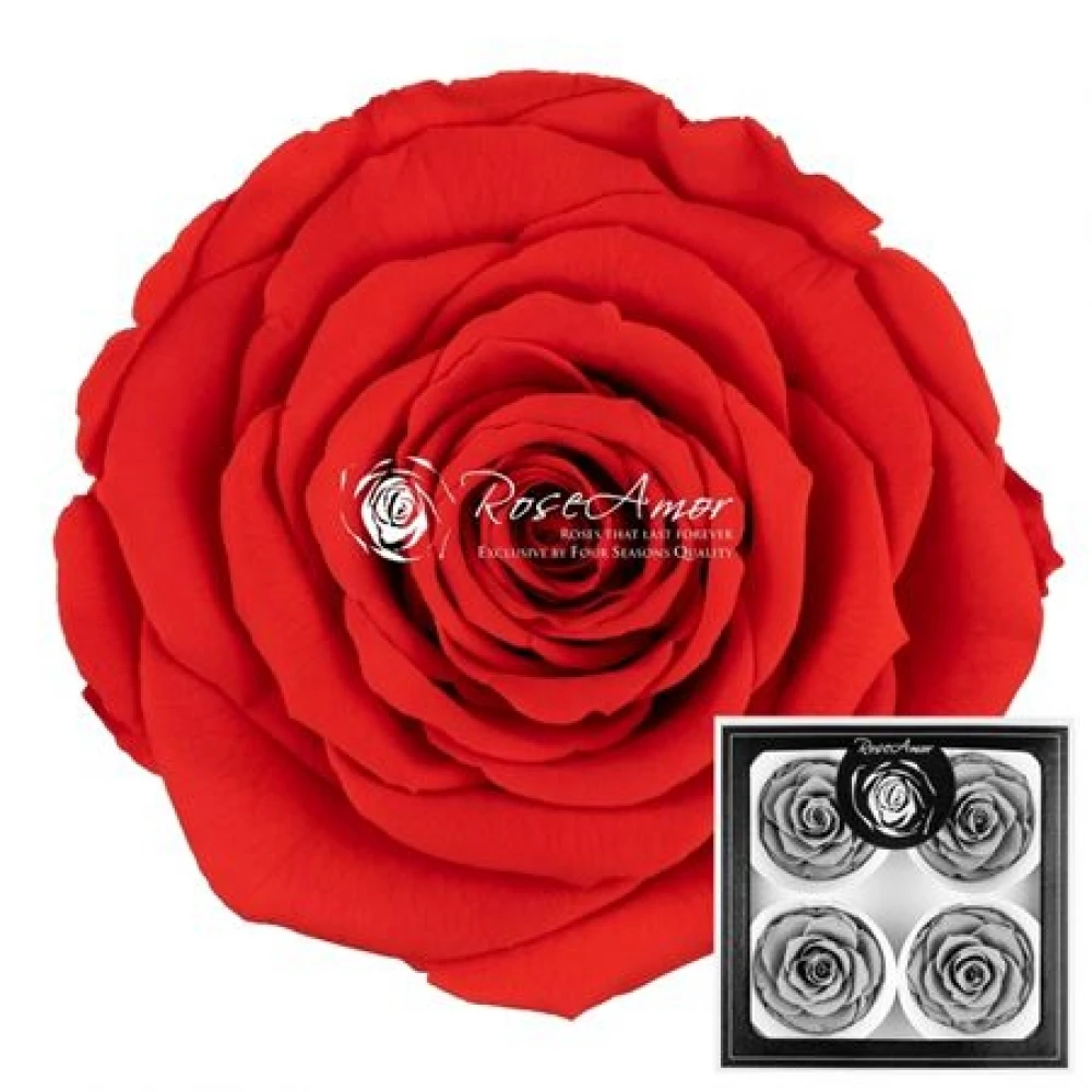 Stabilizované sytě oranžové růže od Rose Amor představují vrchol floristického umění. Díky revoluční metodě stabilizace si tyto růže udrží svůj živý odstín a plný tvar bez potřeby vody či další péče. Nabízené v elegantní krabičce po čtyřech kusech, jsou skvělou dekorací či exkluzivním dárkem.