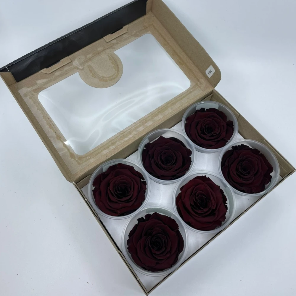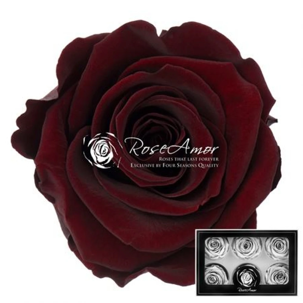 Stabilizované temně červené růže plus v krabičce 6ks od Rose Amor jsou vytvořené, aby přinášely radost po dlouhou dobu. Každá růže je pečlivě vybrána a ošetřena speciální technikou, která uchovává jejich krásu a strukturu po mnoho let bez potřeby vody či světla.